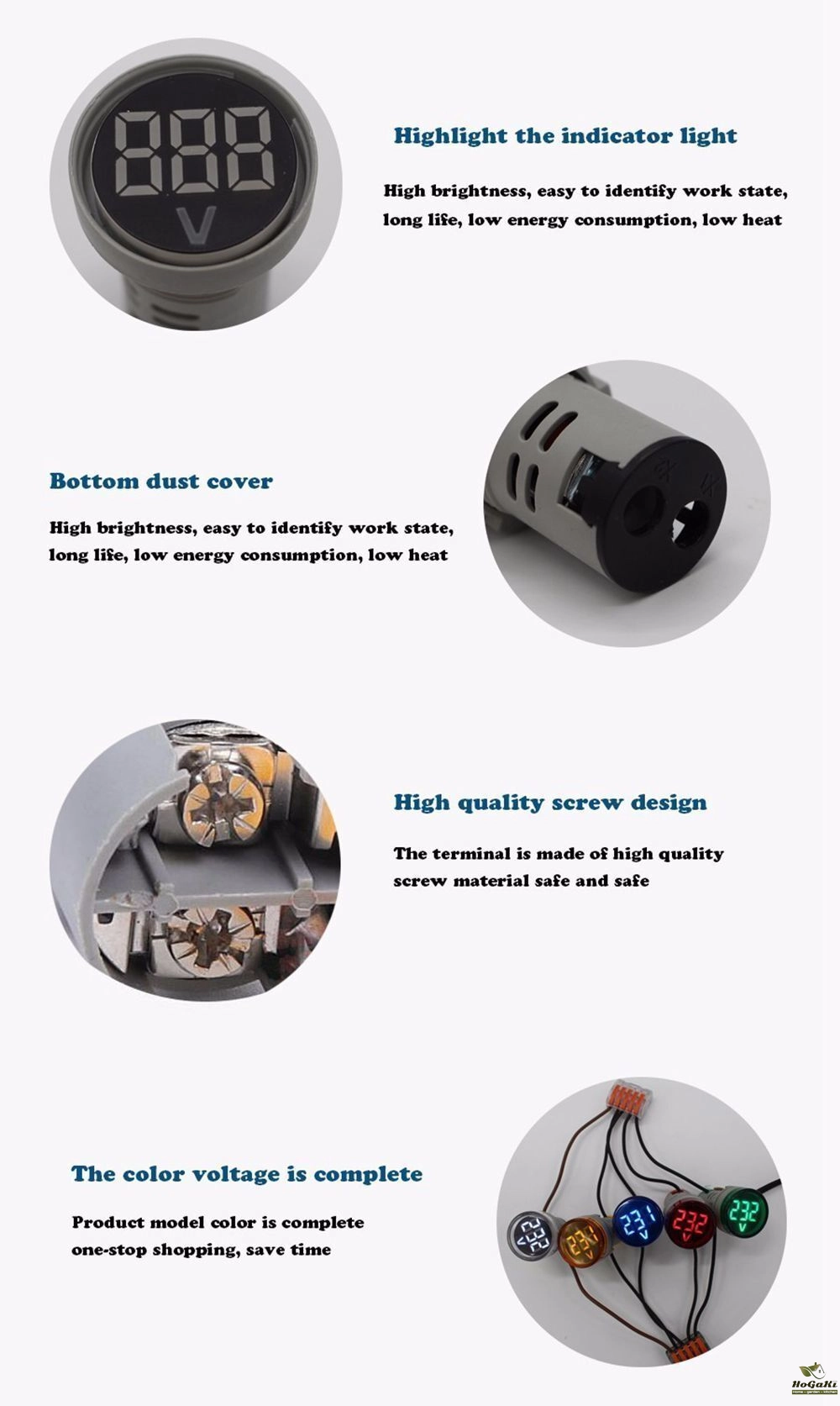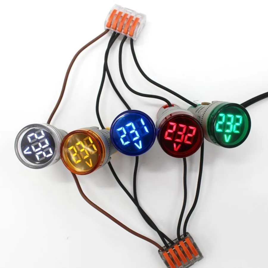 With a voltage indicating lamp with high brightness LCD light emitting chip as light source, long life, low energy consumption, small volume, light weight, head styles, high brightness, good reliability, beautiful appearance and exquisite manufacture, suitable for electric power, telecommunications, shipbuilding, machine tools, textile, printing, mining machinery and other equipment in line pilot signal and display voltage, five colors: red, green, yellow, blue, white. Clearly indicate different work and voltage display status.The luminous body adopts pure color super bright LED luminous tube. The color is pure, and the life span can reach 100 thousand hours;