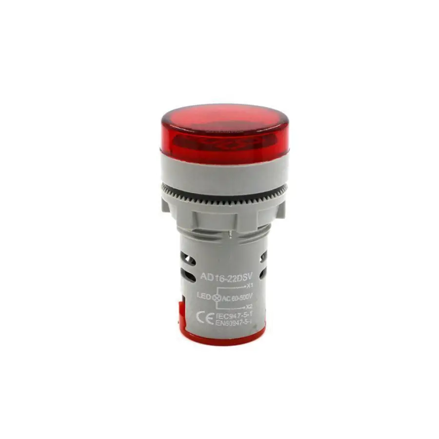 With a voltage indicating lamp with high brightness LCD light emitting chip as light source, long life, low energy consumption, small volume, light weight, head styles, high brightness, good reliability, beautiful appearance and exquisite manufacture, suitable for electric power, telecommunications, shipbuilding, machine tools, textile, printing, mining machinery and other equipment in line pilot signal and display voltage, five colors: red, green, yellow, blue, white. Clearly indicate different work and voltage display status.The luminous body adopts pure color super bright LED luminous tube. The color is pure, and the life span can reach 100 thousand hours;