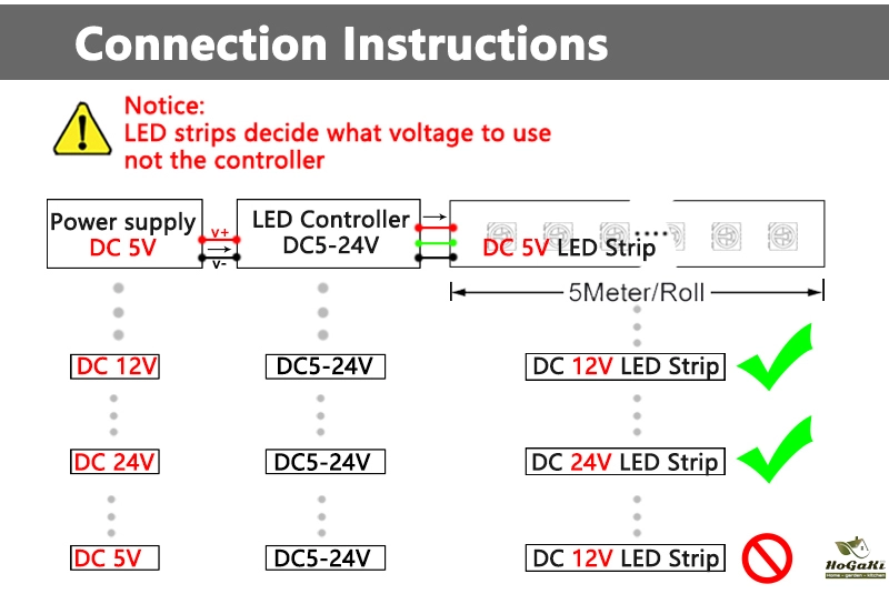 Please choose the power supply of the same voltage according to the voltage of LED lights. Not the controller