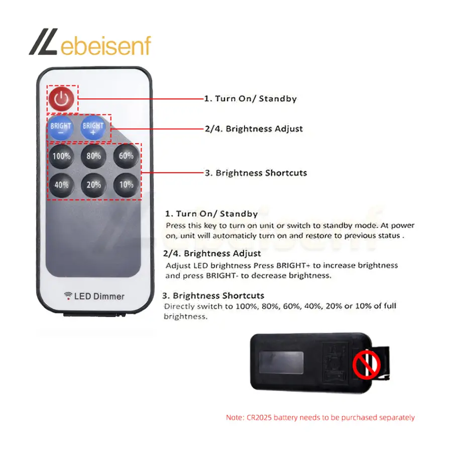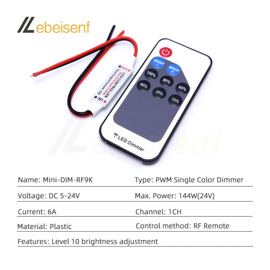 Used to control various lighting fixtures using LED as the light source, and the brightness of LED lights can be adjusted through radio frequency remote control