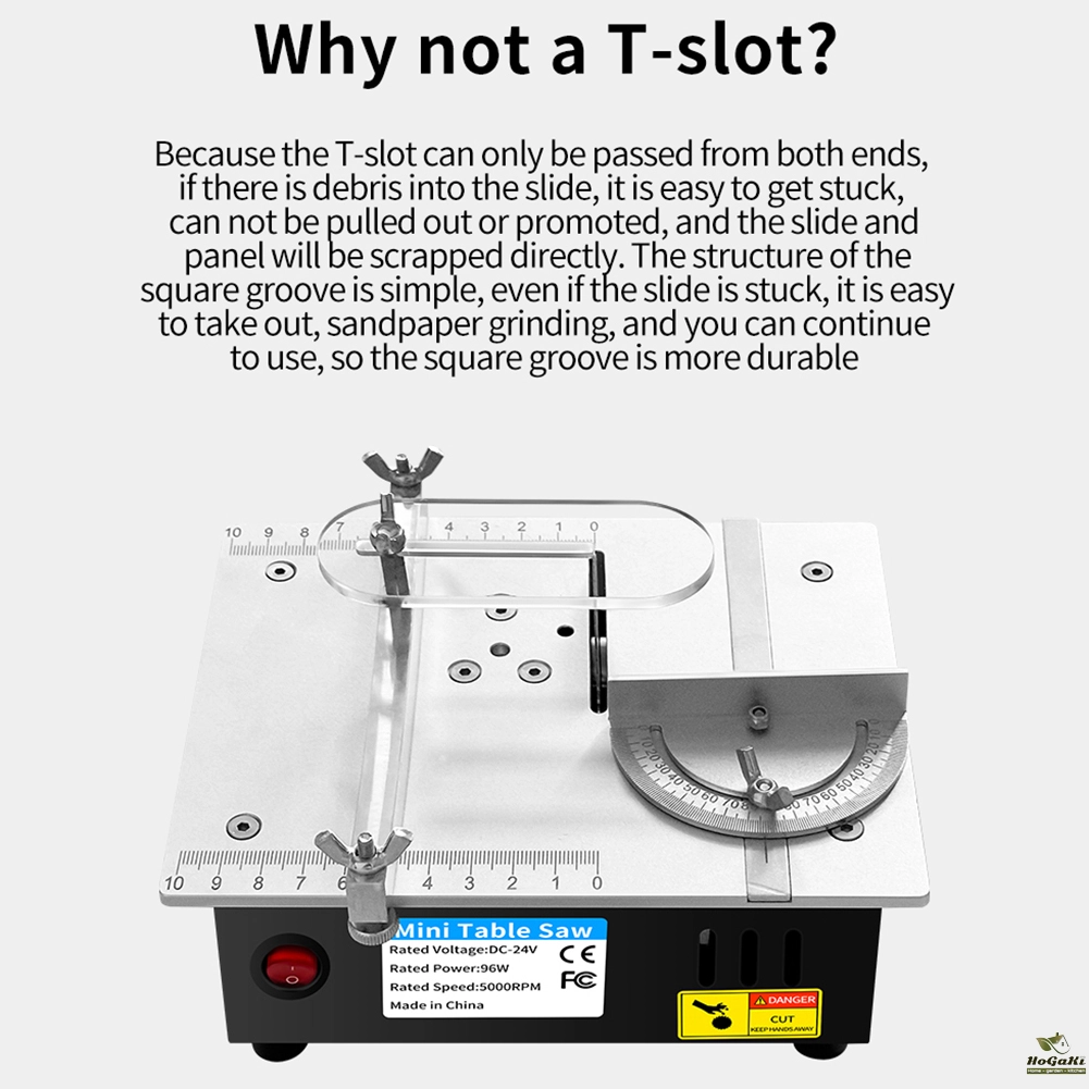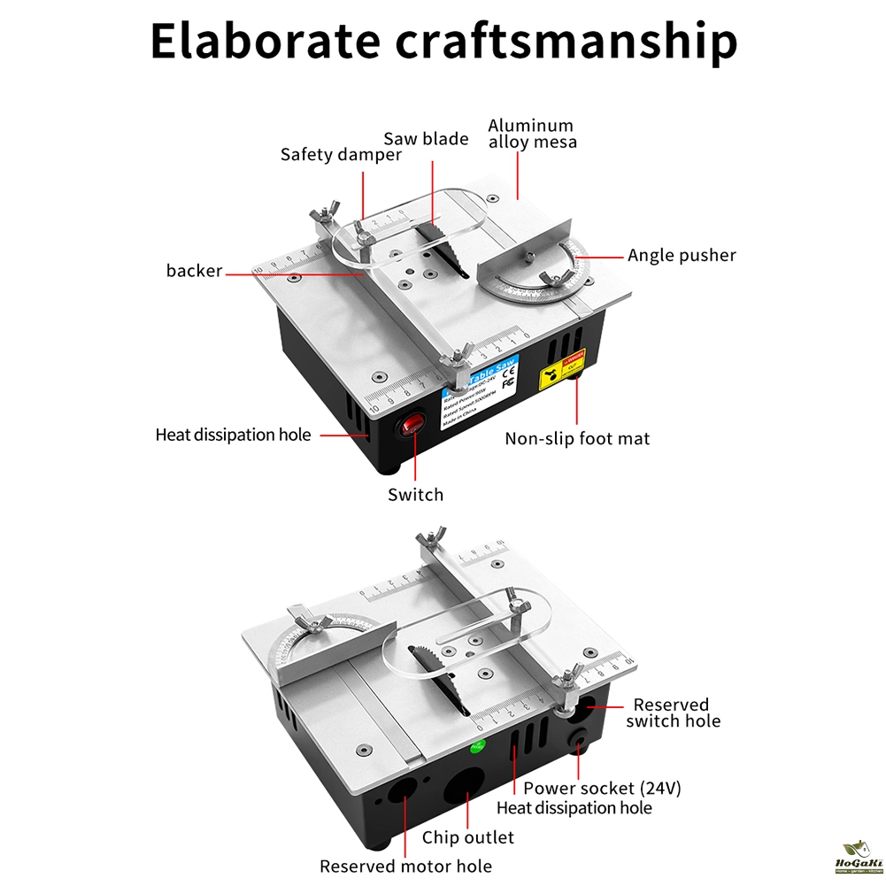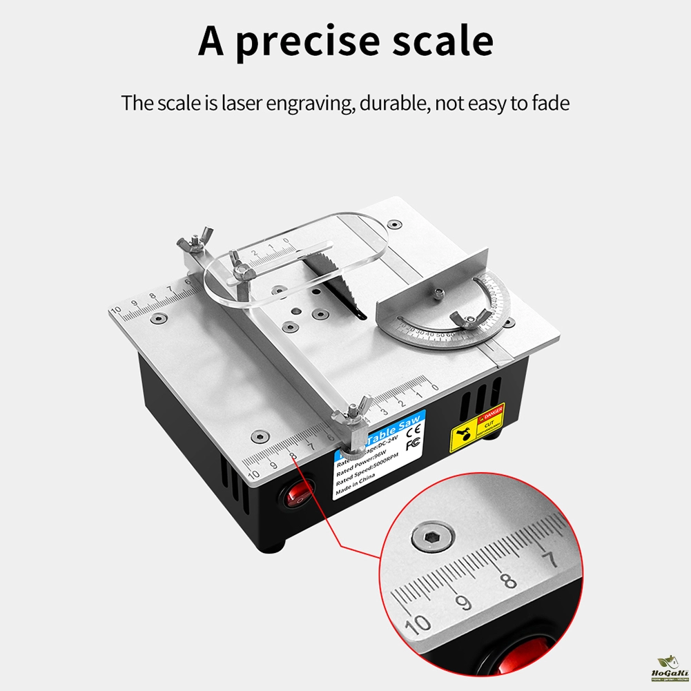 Note: Mini Multifunctional Table Saw 96W Small Electric Desktop Saws 5000RMP Bench Lathe Cutter Machine Portable 0.55in Cutting Depth Household Cutting Tool Feature: 1. Compact Size and Lightweight: This multifunctional table saw is designed to be small, lightweight, and easy to carry, making it convenient for on-the-go usage and transportation. 2. Construction: Made from high-quality aluminum alloy and cold-rolled steel materials, this electric desktop saw exhibits strong wear resistance and has a long service life. 3. Powerful and Adjustable Cutting Power: With a 96W high-power motor and 7-speed adjustable power supply, this hobby table saw meets diverse cutting requirements for different materials. 4. Precise and -Engraved Scale Design: The precise scale design of precision table saw, enhanced by engraving, ensures accurate measurements for reliable guidance in precise cuts. 5. Adjustable Transparent Acrylic Guard: Equipped with an adjustable transparent acrylic guard, this cutting diy saw provides safety by preventing accidental contact with the saw blade while maintaining an unobstructed view of the cutting area. Specification: Certification: NONE Origin: Mainland China Saw Type: Table Saw Power Source: DC Model Number: Table Saw Rated Voltage: 24V Application: Wood Saw Dimensions: 7.09x5.51x3.14in Weight: 1700.00 g Wattage: Under 300W Usage: Home DIY Material: aluminum alloy + cold rolled steel Rated power: 96W Rated voltage: DC24V, 10A Rated speed: 5000rpm Applicable saw blade: diameter ≤ 63mm, thickness < 1.5mm, aperture = 16mm Ruler length: 100mm/3.94in Cutting depth: 14mm/0.55in Item size: Table saw size: about 180x140x80mm/7.09x5.51x3.14in