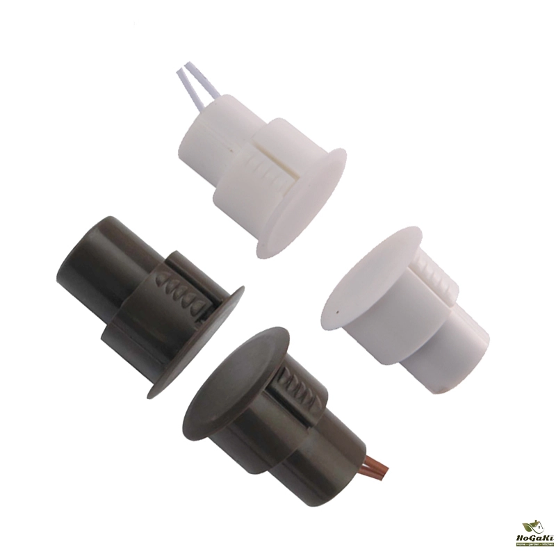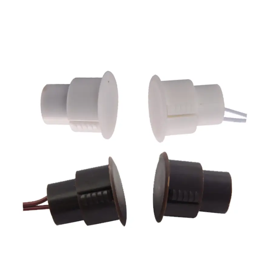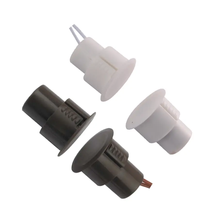 AC-136 Door magnetic contacts is an intrusion detector for doors and windows status monitoring in security system, which is made of a reed switch and a magnet. When doors and windows are closed, switch contact is affected by magnetic field of the magnet then forms a conducting state; When doors and windows are forced open, magnet is far from reed magnetic switch, the switch is disconnected and cause alarm.