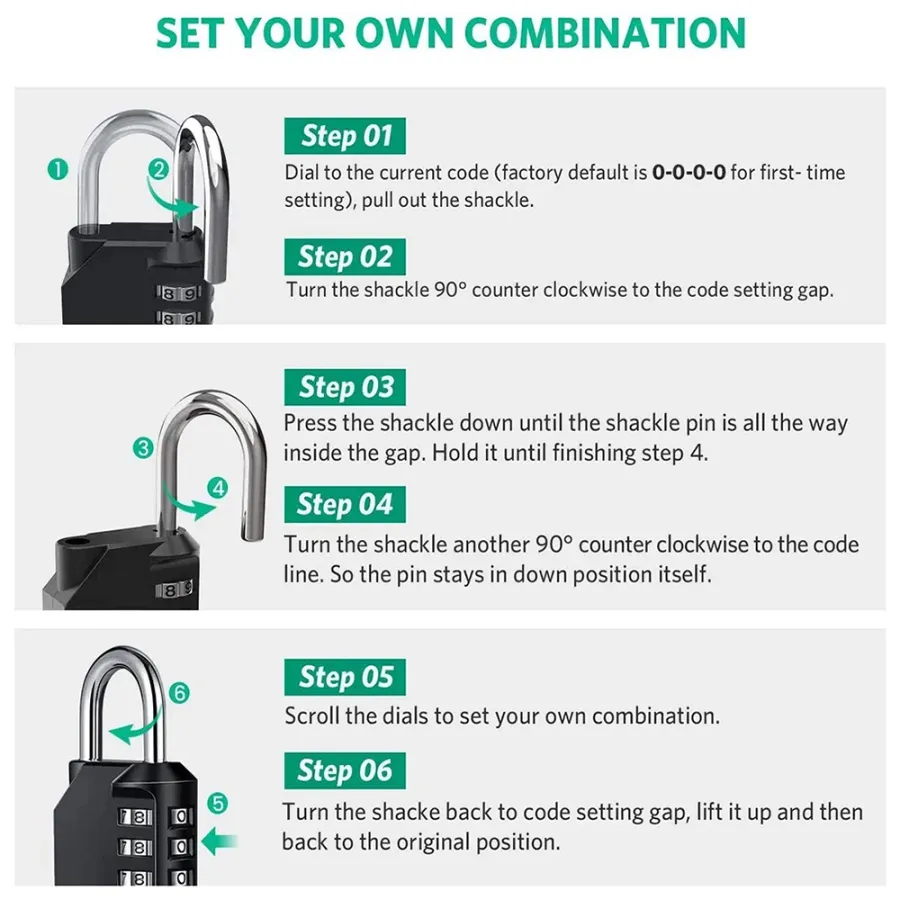 ● When you set the password, the shackle should be pressed to the end completely. Otherwise, it will lead to a disorder of new password and cannot be unlocked