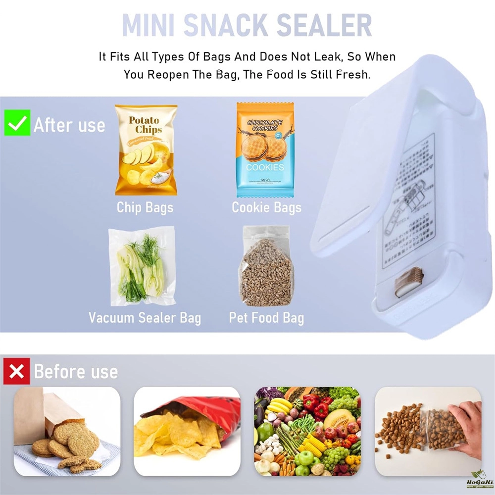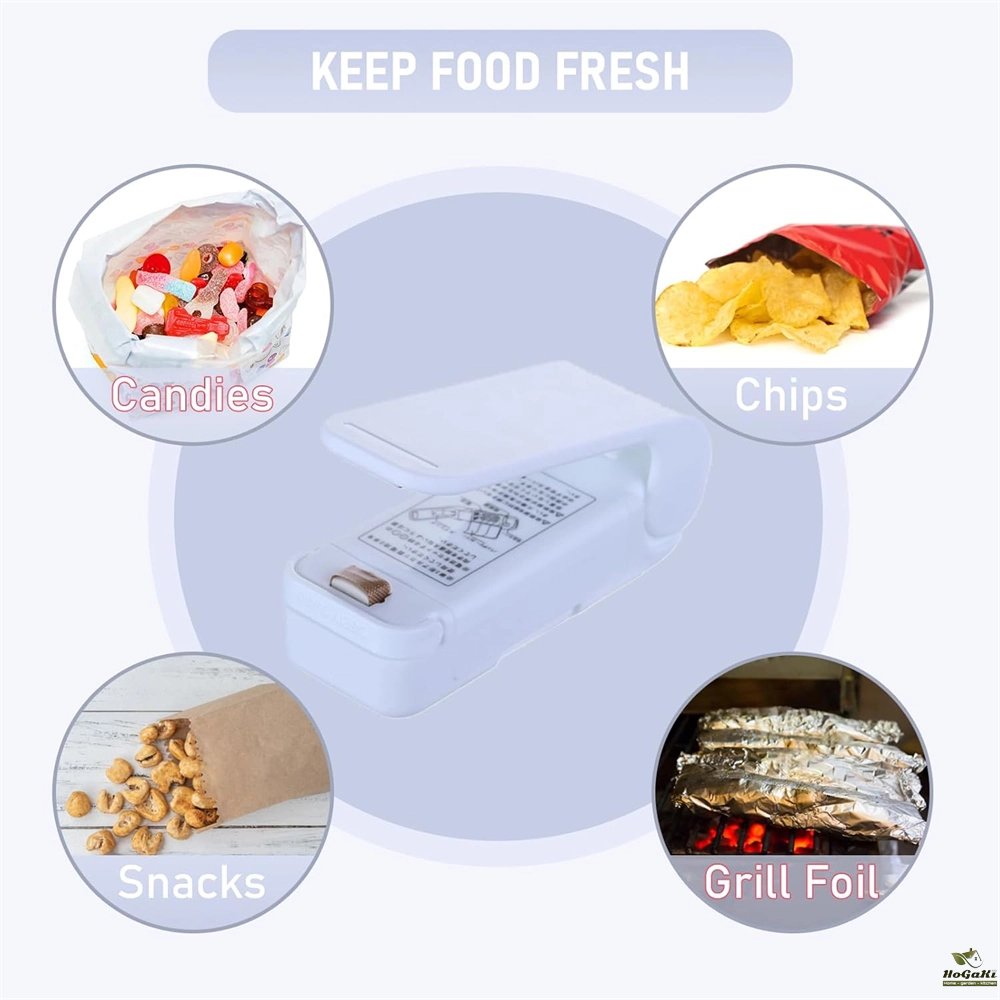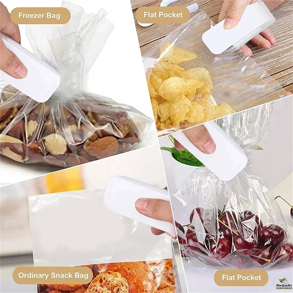 3.Mini Bag Sealer:Portable mini bag sealer use the principles of hot melt sealing to melt the things between the clamps. Don't need to preheat before using,just press and pull the mini food sealer across the bag to create an airtight seal.