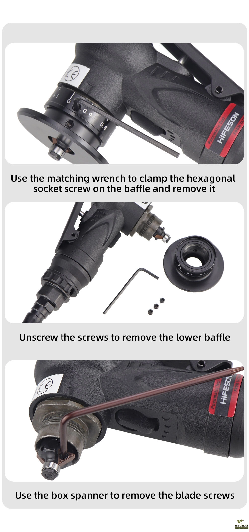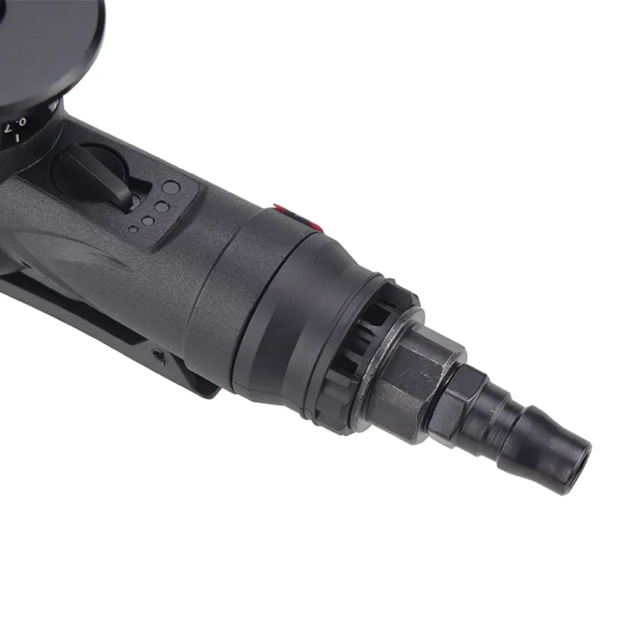 Equipped with an air intake adjustment switch, 5-speed air intake adjustment, and air intake size can be adjusted at will to meet your different work needs. To adjust the chamfer size, unscrew the screw, rotate to select the scale size, and tighten the screw. Equipped with a 360-degree rotating exhaust port, which can quickly exhaust and reduce the temperature of the machine.