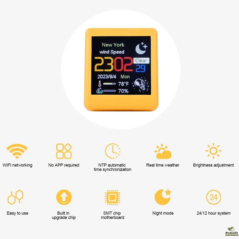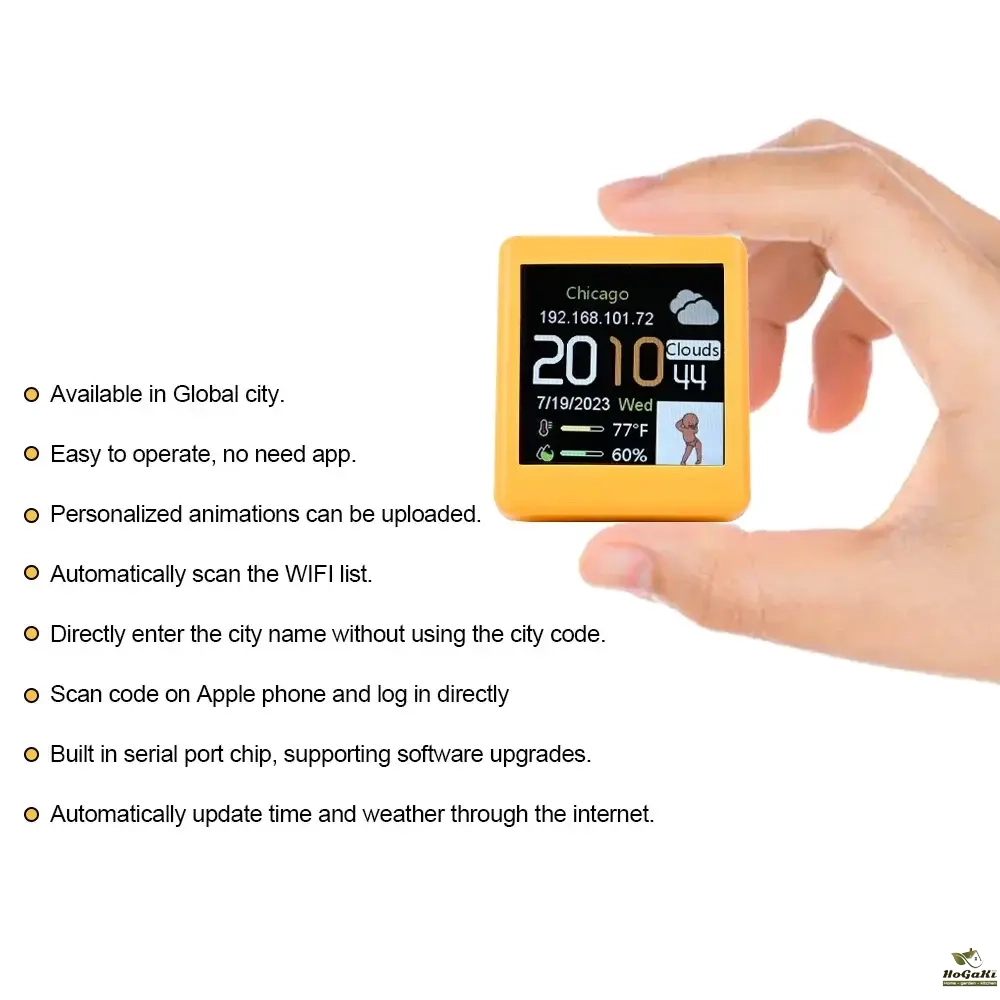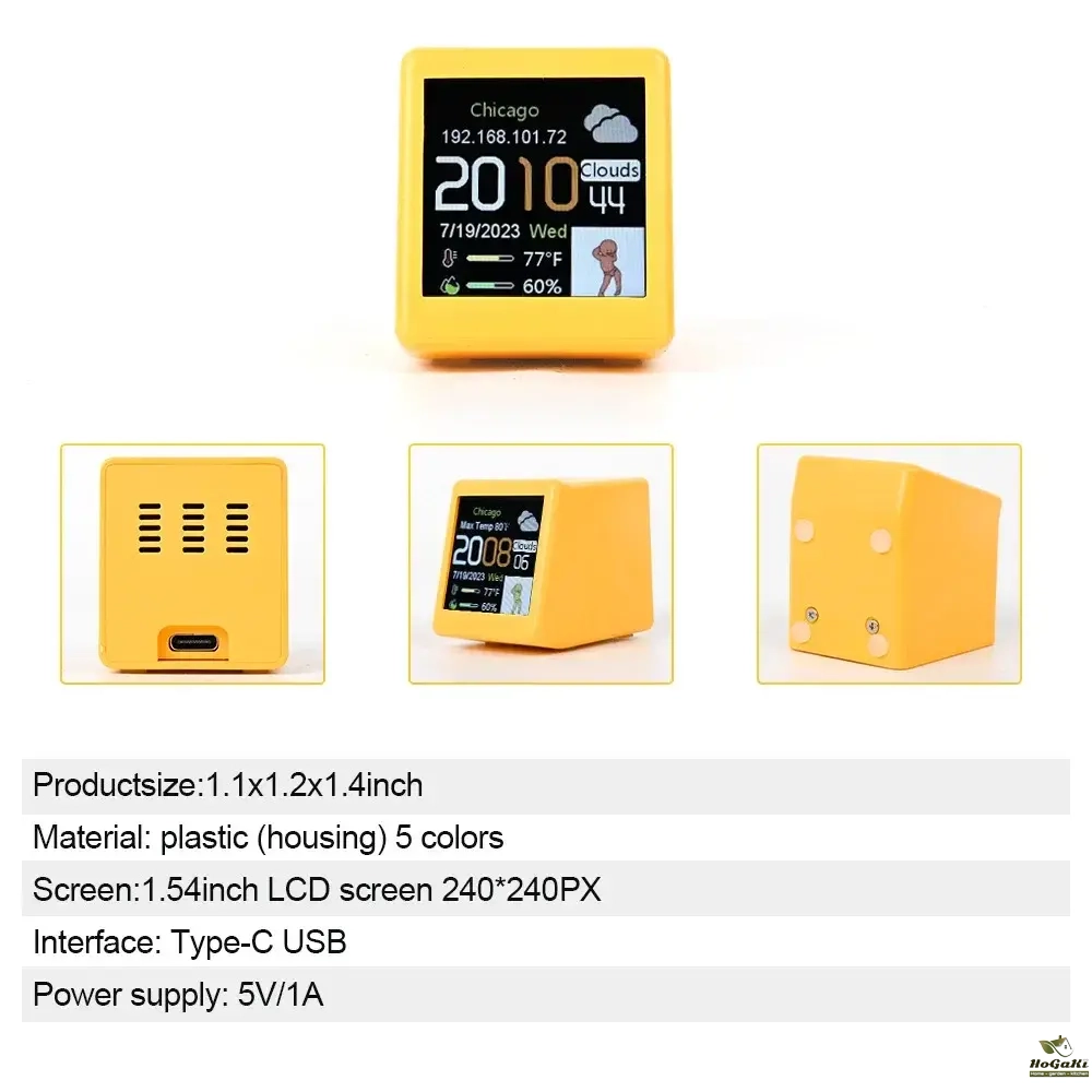 • Compact Smart Wifi Weather Station :This small, portable device is a smart Wifi weather station, offering real-time temperature, humidity, and time display. It's an ideal desktop decoration that provides practical information.