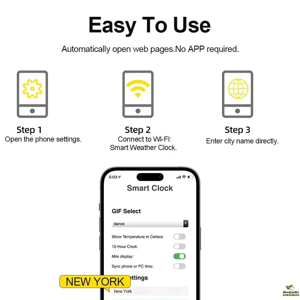 *1. Smart WIFI weather station Clock gets all information by accessing to the local weather forecast website through the internet.