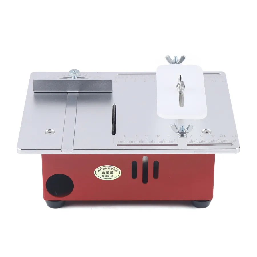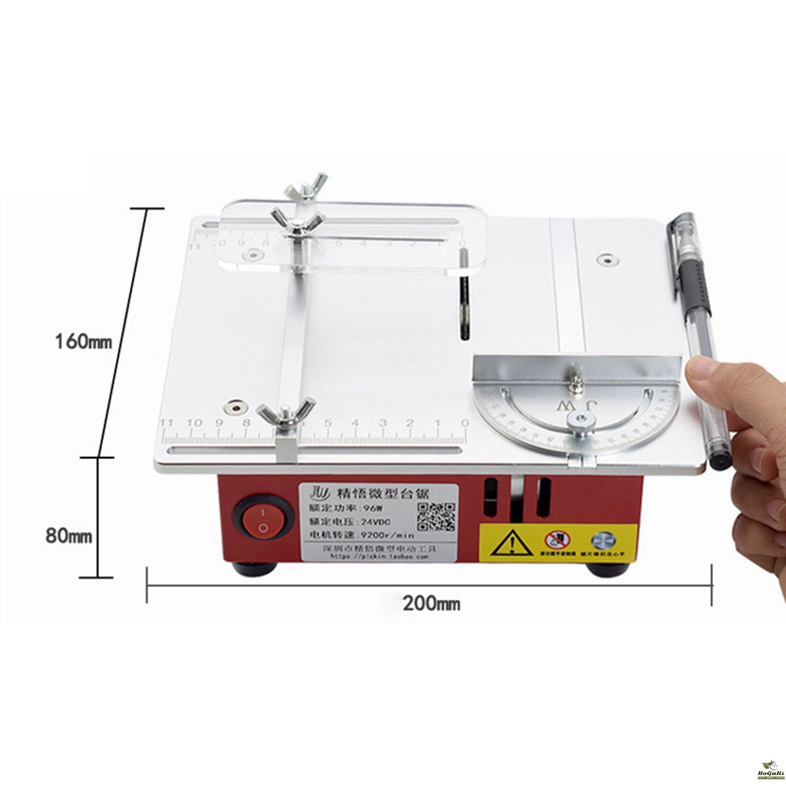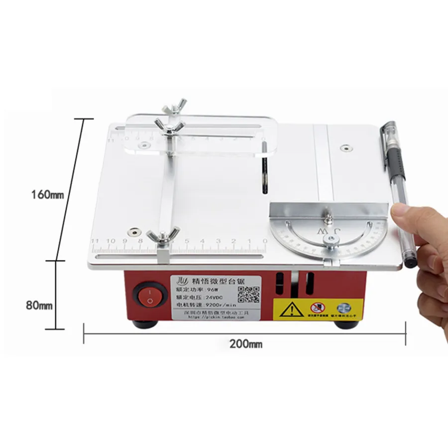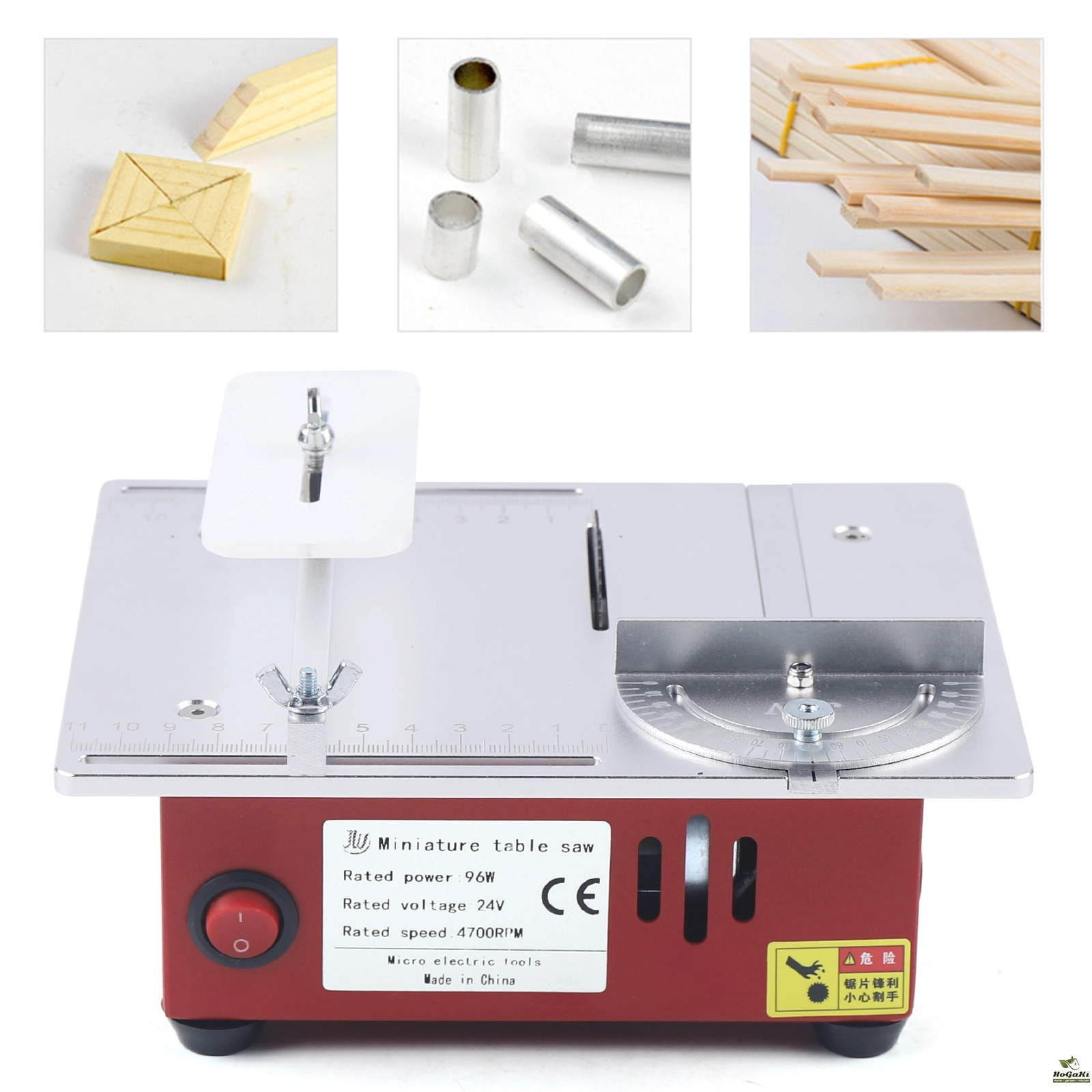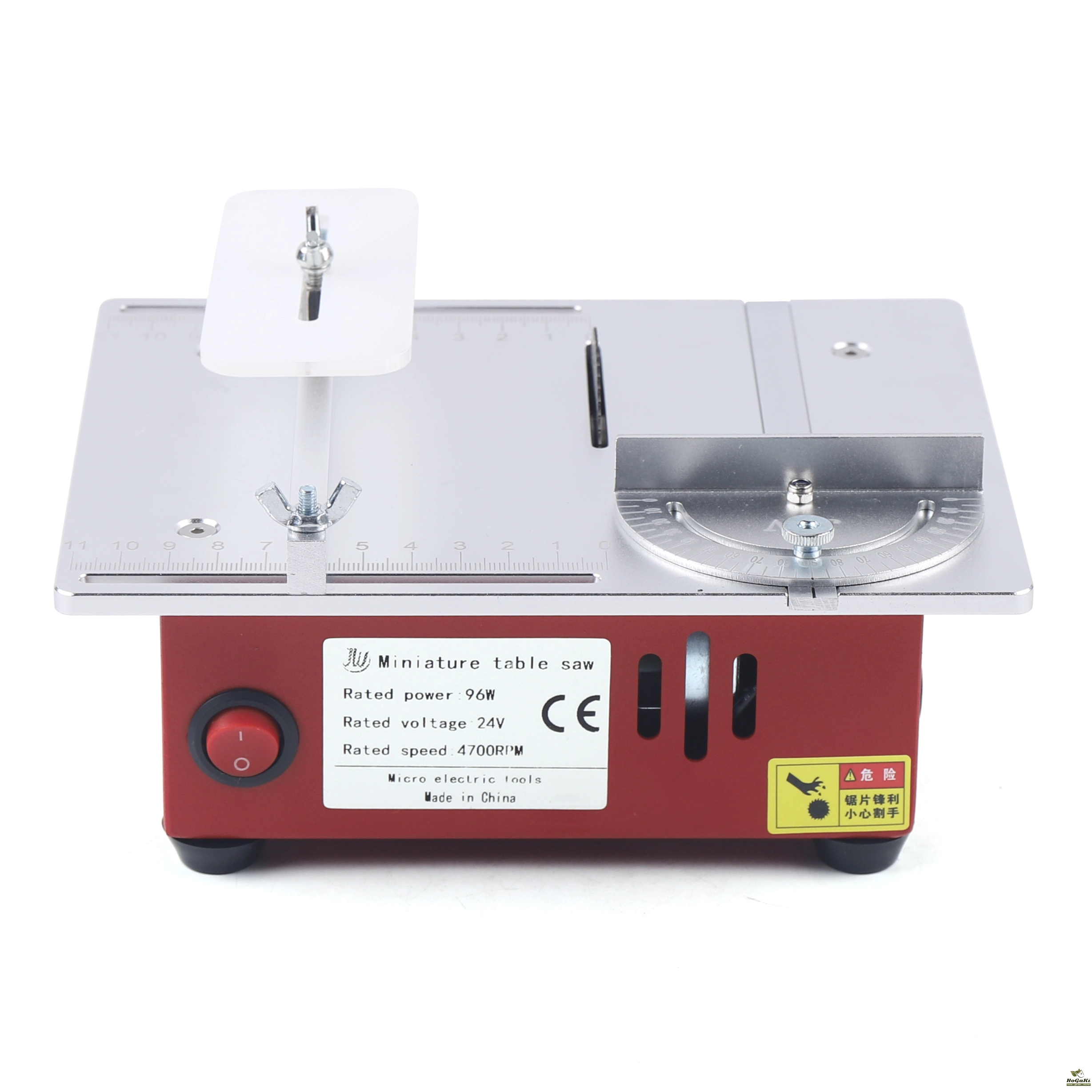The mini table saw is Compact and portable, precision design, durable. Fully enclosed metal shell, with dust pipe, no longer worry about dust. Seven speed regulating power supply 96w, for DIY manual model / PCB cutting / small plastic metal cutting.