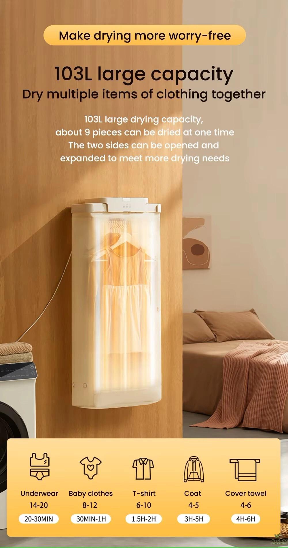 Multifunctional Dryer Electric Clothes Dryer Portable Compact Foldable Laundry Dryer Machine with Dryer Bag and Time Setting