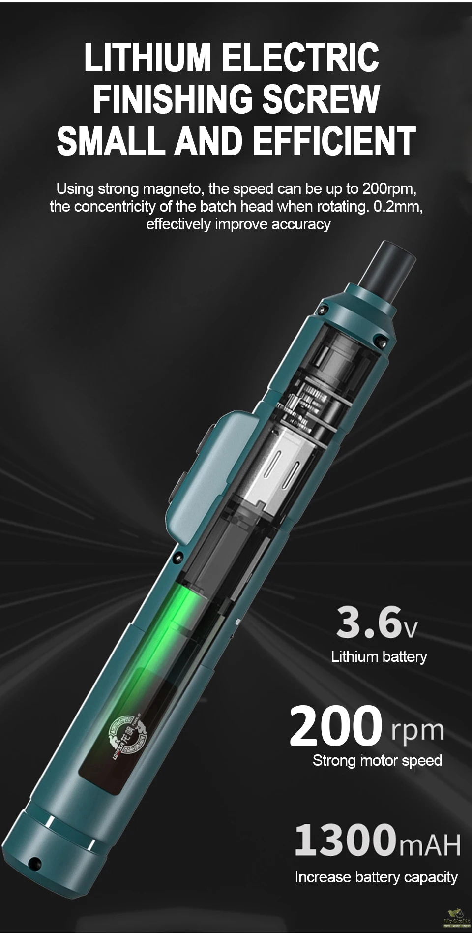 3. Built-in 1300mAh lithium battery, no-load output speed up to 200r/min, satisfying high efficiency without losing controllability.