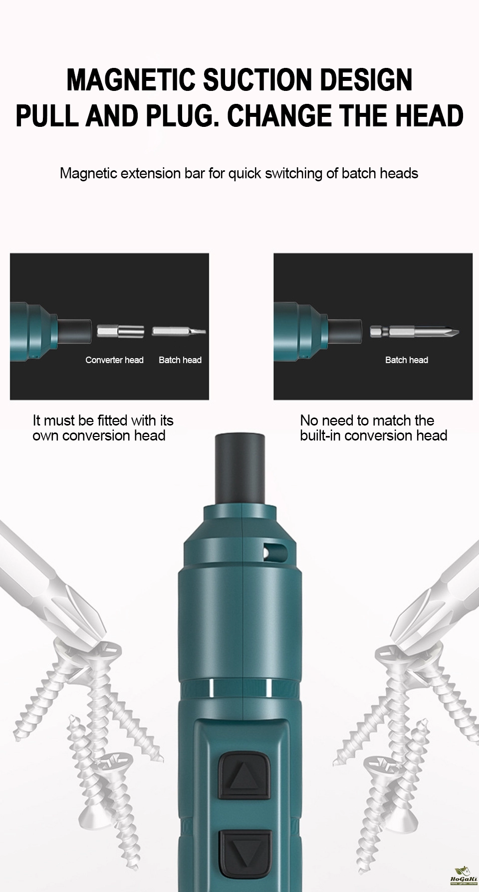 4. Magnetic suction design, magnetic extension rod, one pull and one plug, can quickly switch bits.