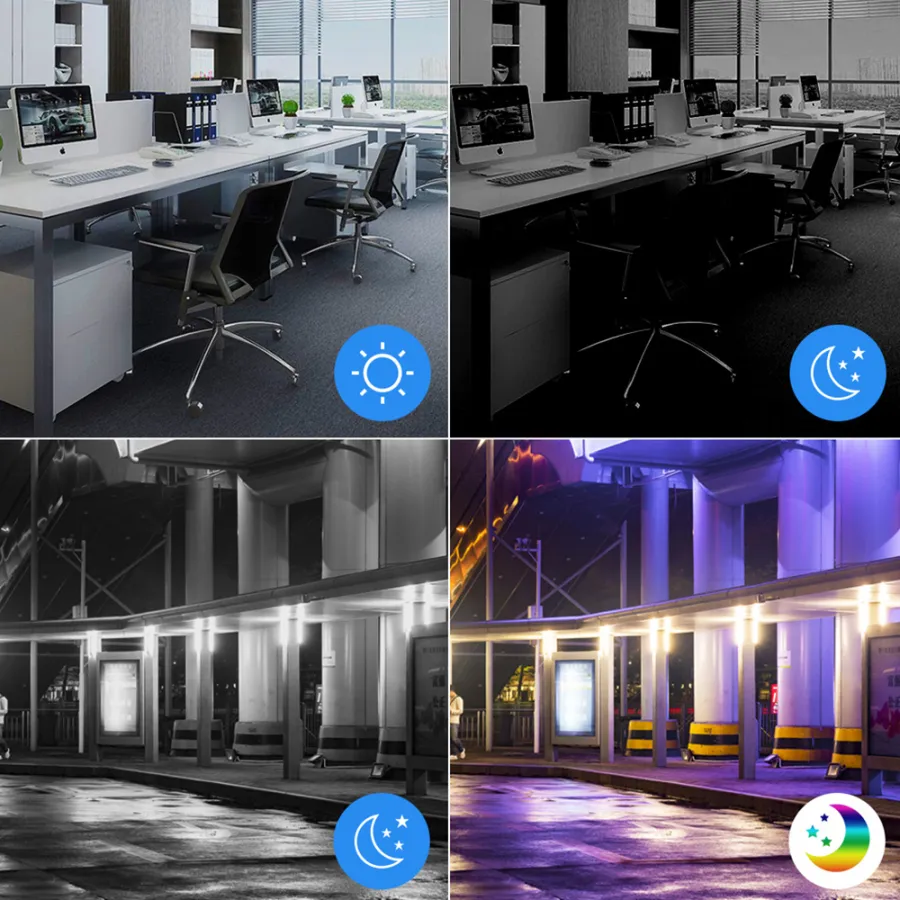 Three lighting modes, in addition to normal daylight mode and night vision mode, when an alarm occurs at night, the camera will automatically turn on the white light to increase the exposure, providing you with color images without losing any details