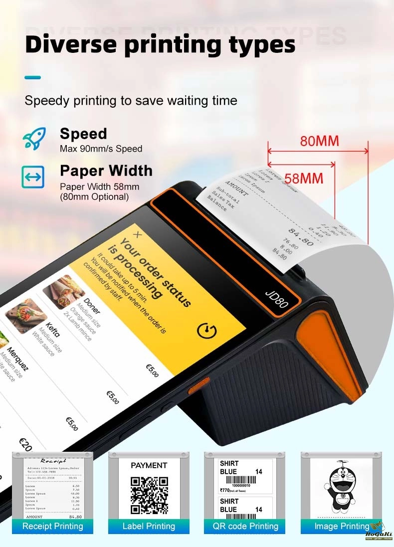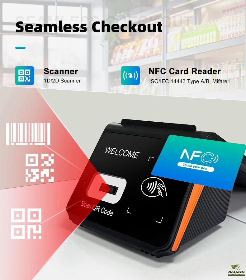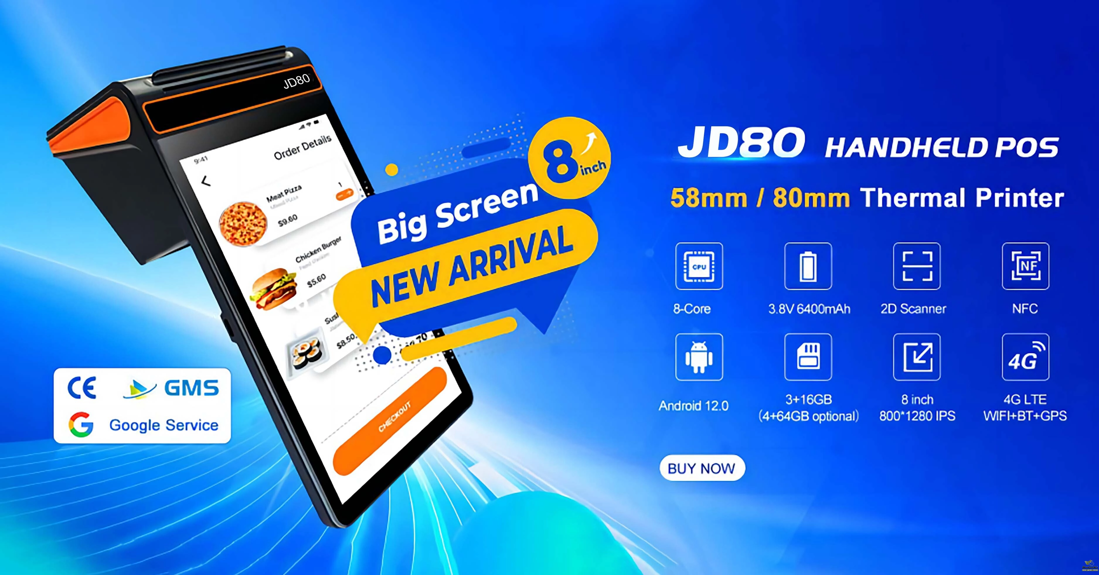 Mobile 8 inch Android 12 POS Terminal with 58/80mm Printer Loyverse Desktop POS Support 4G WIFI Bluetooth Connection 2D Scanner