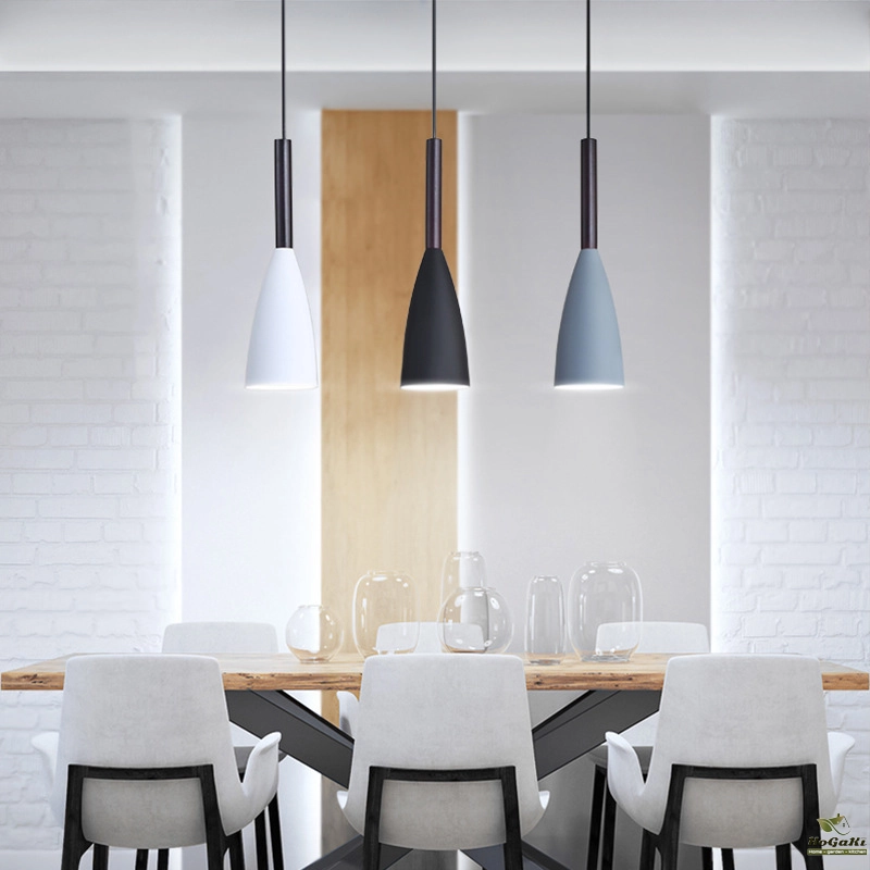 Contemporary pendant lighting with polish painting aluminum shade that directs the light downwards in a narrow beam angle. Perfect for your kitchen island or bedroom hanging table lamp.