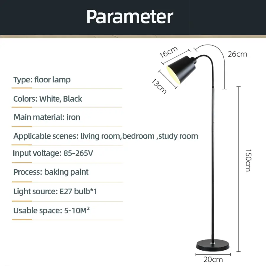 With a simple yet stylish design, this floor lamp is equipped with an adjustable gooseneck that makes it easy to illuminate at multiple angles.The LED light source is energy efficient and emits a soft and comfortable light without glare, creating an ideal light environment for reading, working or relaxing. Its wide range of applications, whether in the living room, bedroom or office, can be perfectly integrated to add a sense of beauty to the space.