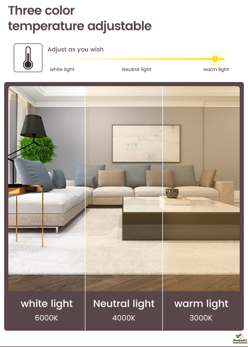 Color temperature: warm white (3500K)to neutral white (4500K)to daylight white(6500K)