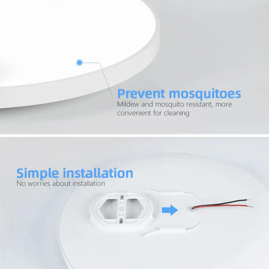 This is a three-proof ceiling lamp that is waterproof, insect-proof and dust-proof. Simple black and white colors make people's vision wider, and soft light tones fill the entire home environment. Suitable for bathrooms, corridors, aisles, restaurants, study rooms, bars, coffee shops, bedrooms, studios, etc. It is the best product and gift for you and your children and loved ones.