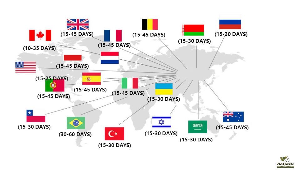 | Mexico, Central America, South America | 15-30 Business days |
