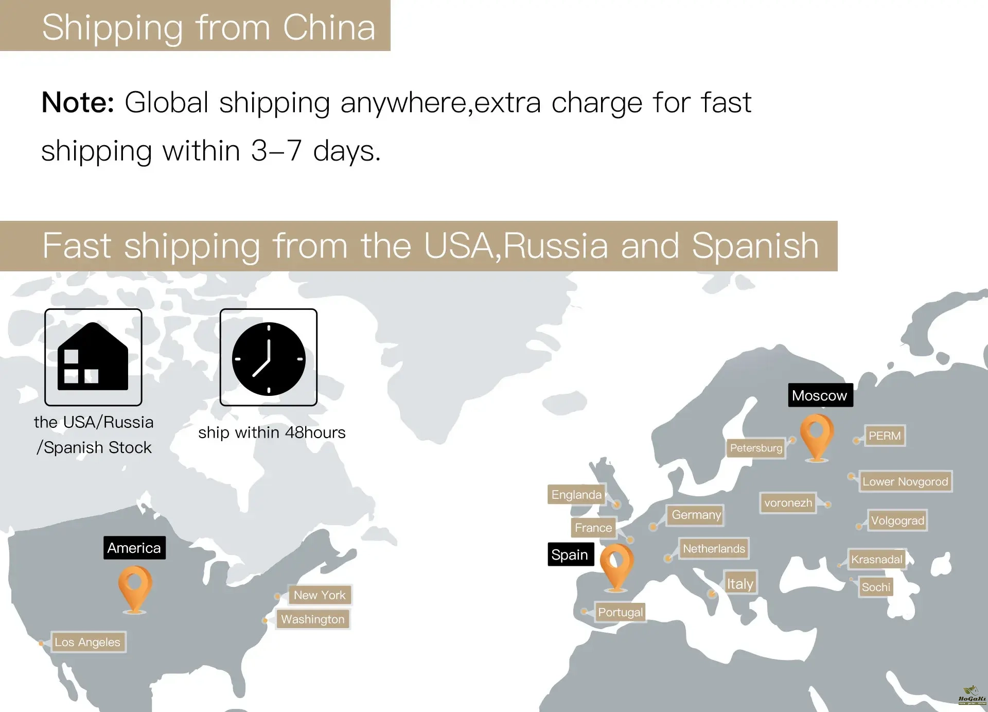 Packages from our warehouse in China will be shipped by ePacket or EMS depending on the weight and size of the product. Packages shipped from our US warehouse are shipped through USPS.