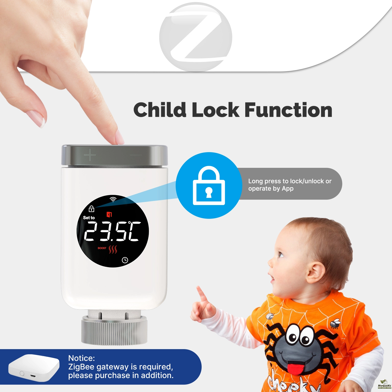 This function is to avoid possible overuse of electricity and life influences caused by mistake when your children touch the thermostat radiator valve.