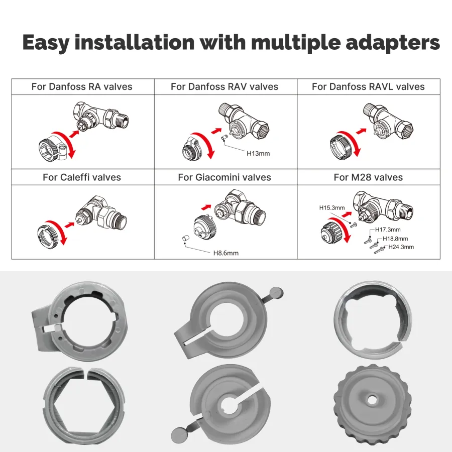 TRV Valve Adapters Connector for Tuya Zigbee WiFi Smart Radiator Thermostat Valve M30*1.5/M28*1.5 Head Adaptor TRV602/TRV604