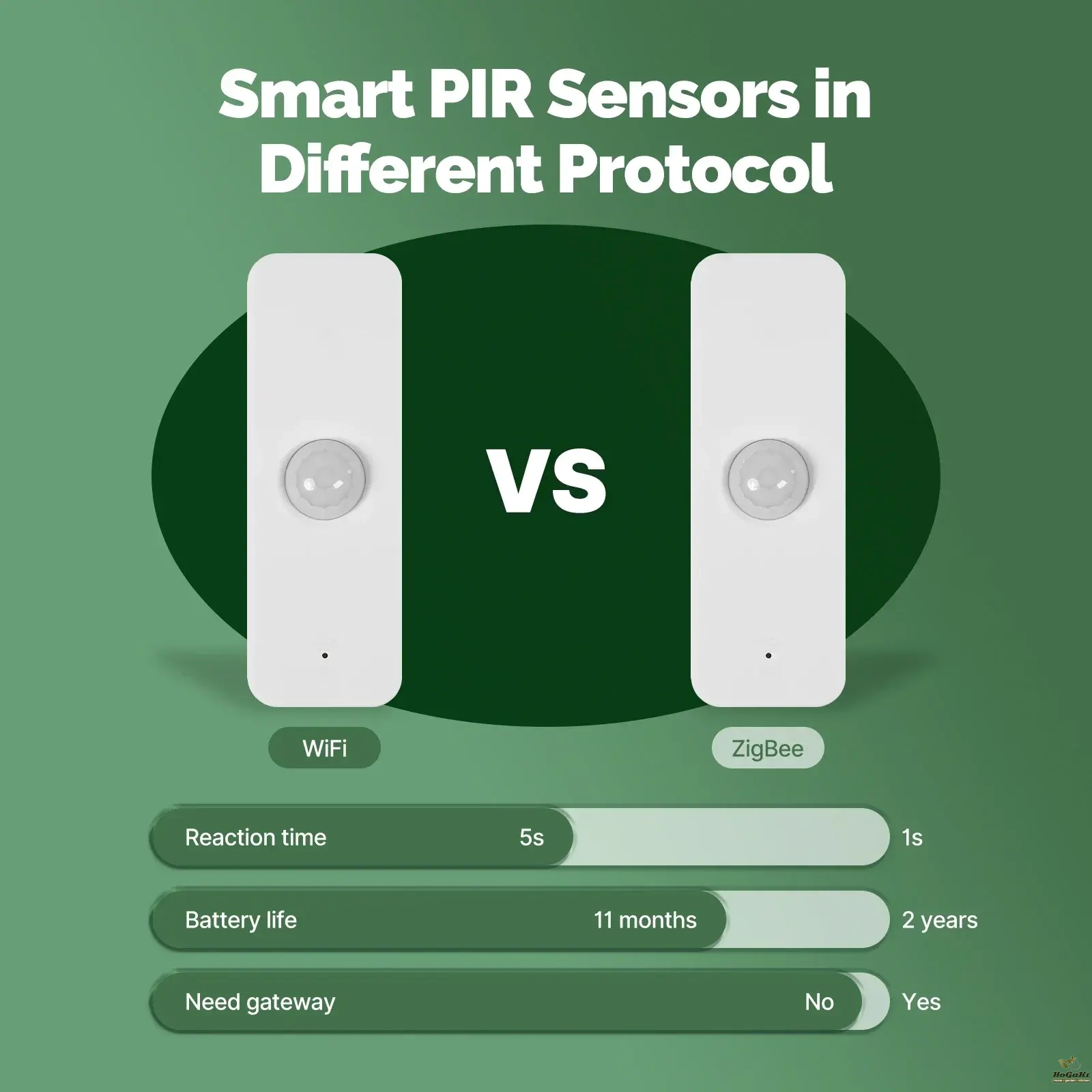 The ZigBee version has a shorter sensor response time, supports low power consumption, and has a longer battery life; while the WiFi version does not require any gateway. Please choose according to your needs.