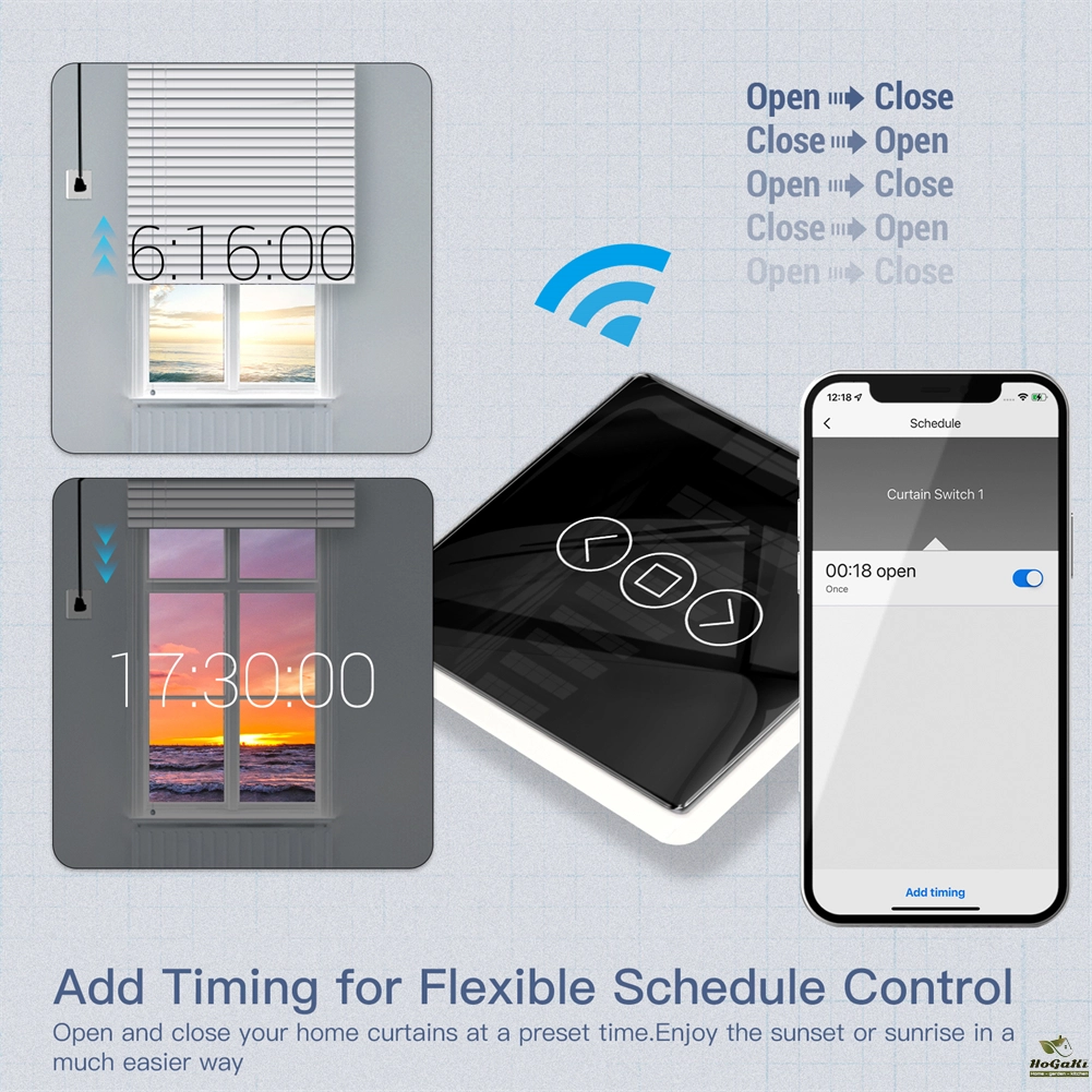 4.Compatible with upgraded Smart Life APP features the smart curtain switch with backlight switch setting and even accurate/quick calibration with no hub required;device share control with family and friends for added convenience