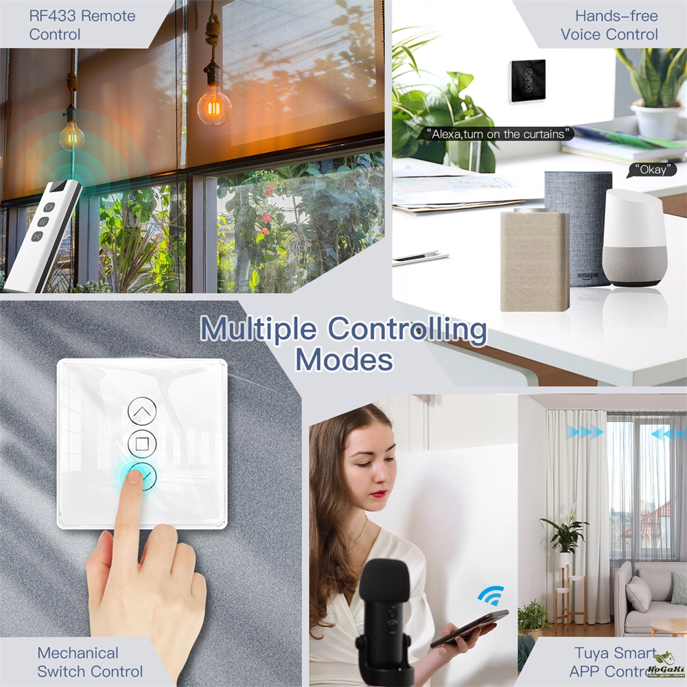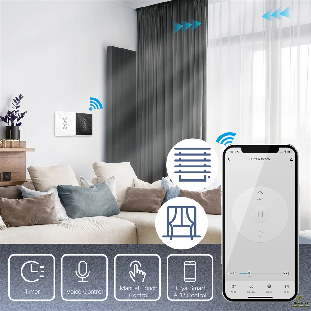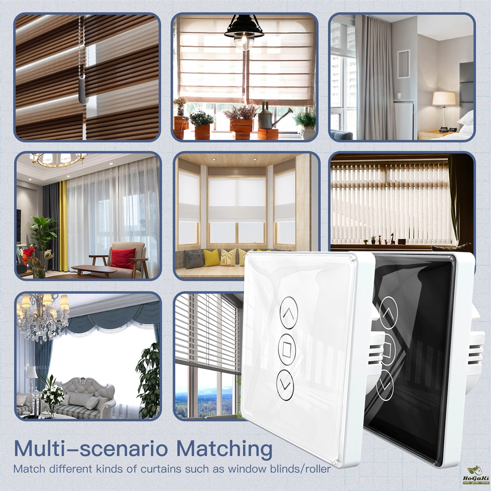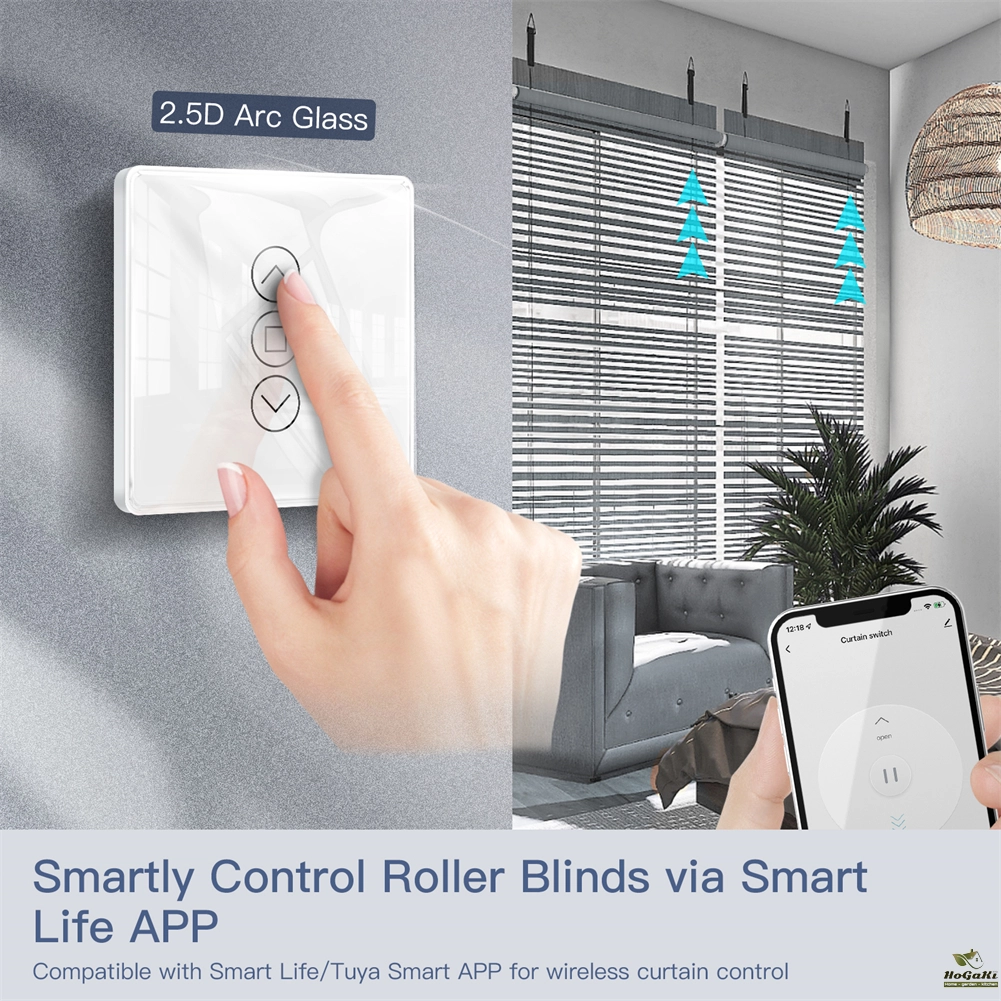 2.Transform your home with easy-to-use smart technology and better-looking 2.5D arc glass; it offers intelligent control with multiple controlling modes including manual control,APP control and RF remote control; built-in RF frequency allows group control for multiple switches with one remote; this switch makes it much easier to control smart motorized curtains and roller blinds around your home; please note that the curtain motor and RF remote is not included in this package.