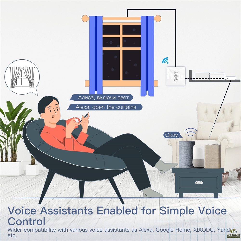 3.Control curtains anywhere, anytime by using your smart phone under Smart Life APP; you can program the curtains to close/open automatically when you're away from home,no more worry about forgetting opening or closing it.Besides,it is with voice assistants enabled for simple voice control by Alexa,Google Home and Yandex.