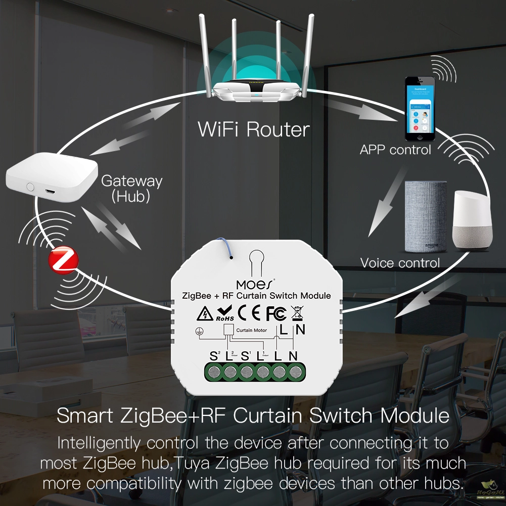 ZigBee DIY RF433 Smart Curtain Switch Module for Electric Motorized Roller Blinds Shutter Motor 2MQTT Available Smart Life/Tuya APP RF433 Remote Control,Compatible with Alexa Echo and Google Home