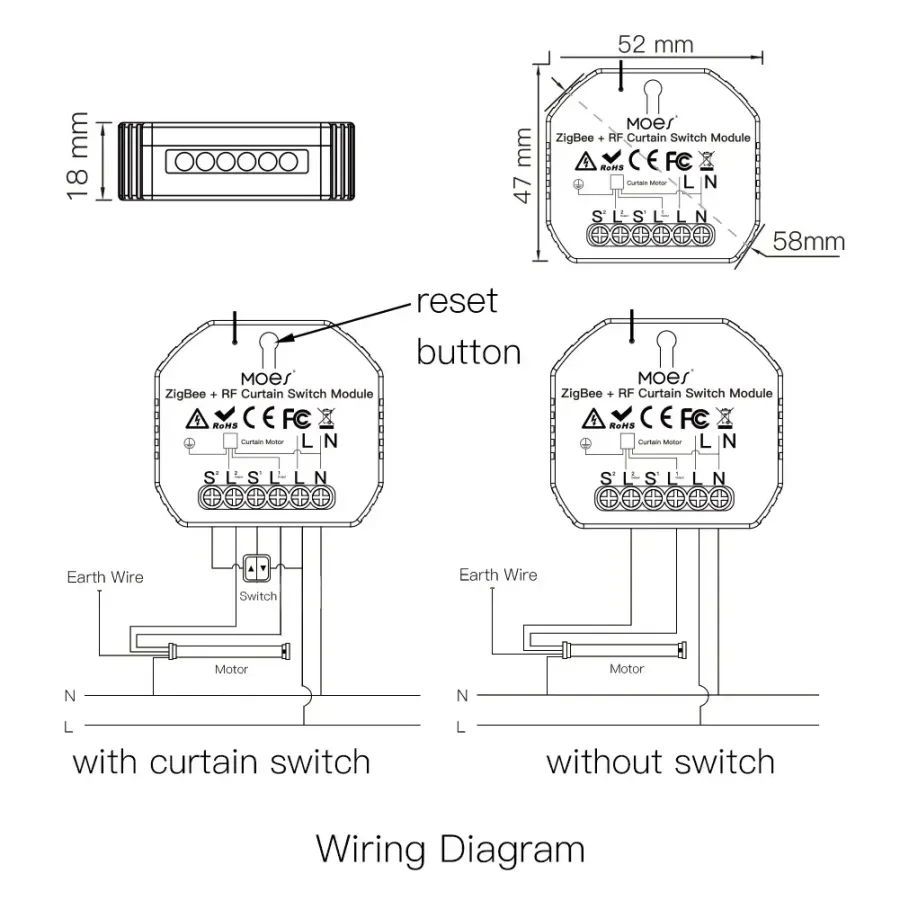 ZigBee DIY RF433 Smart Curtain Switch Module for Electric Motorized Roller Blinds Shutter Motor 2MQTT Available Smart Life/Tuya APP RF433 Remote Control,Compatible with Alexa Echo and Google Home