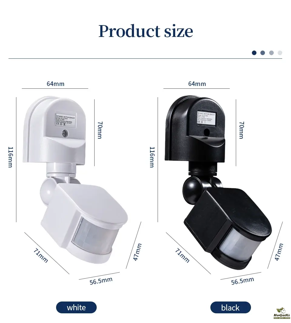 The smart new products, increase the sensor sensitivity can be adjusted (using the SENS knob to adjust) function, increasing the sensor head can be up and down and left and right (up and down 90 degrees, about 160 degrees) can adjust the function, but also increased the induction angle. Product systemic waterproof, can be used indoors and outdoors.