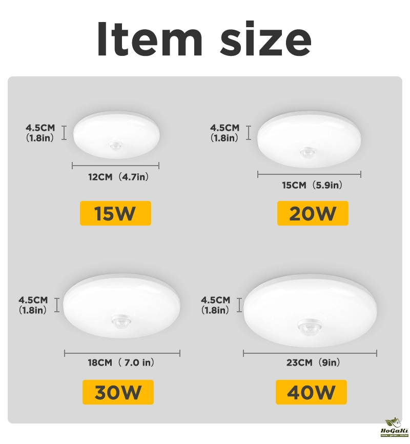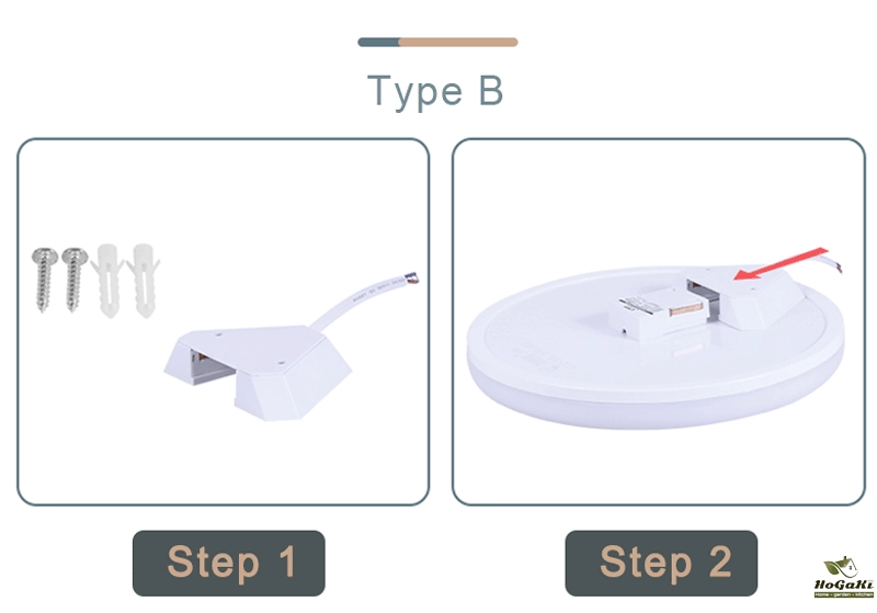 5. Type A 12W 18W, biger size. Lighting area 12-25 ㎡.Type B 15W 20W 30W 40W, smaller size. Lighting area 5-25 ㎡