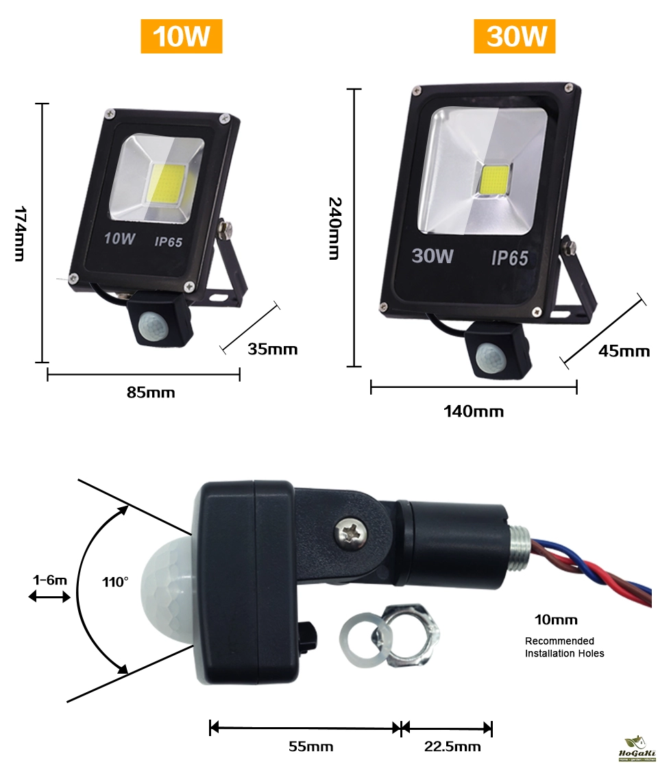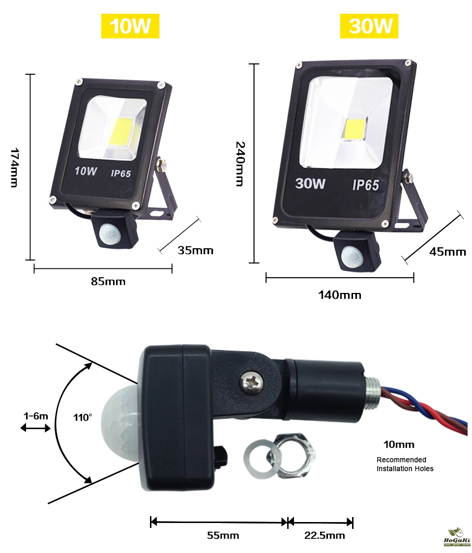 LED Flood Light PIR Motion Sensor 10W 20W 30W 50W 100W 150W 200W 300W AC220V IP66 Waterproof Spotlight Street Floodlight Outdoor