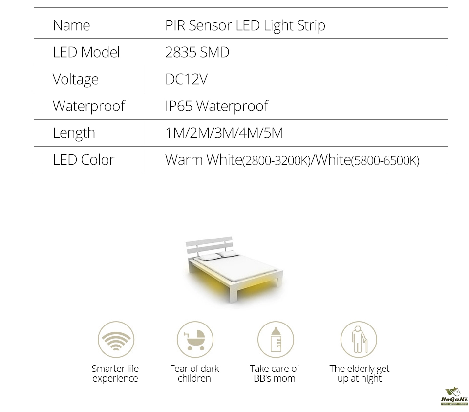 Type: DC 12V 2835 LED Strip With PIR Sensor Controller and Power Adapter