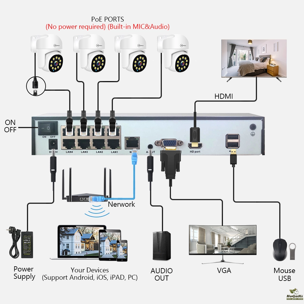 NVR Kits Adopts advanced H.265 video compression,reduces 50% file size and keep same quality compared to H.264 one.