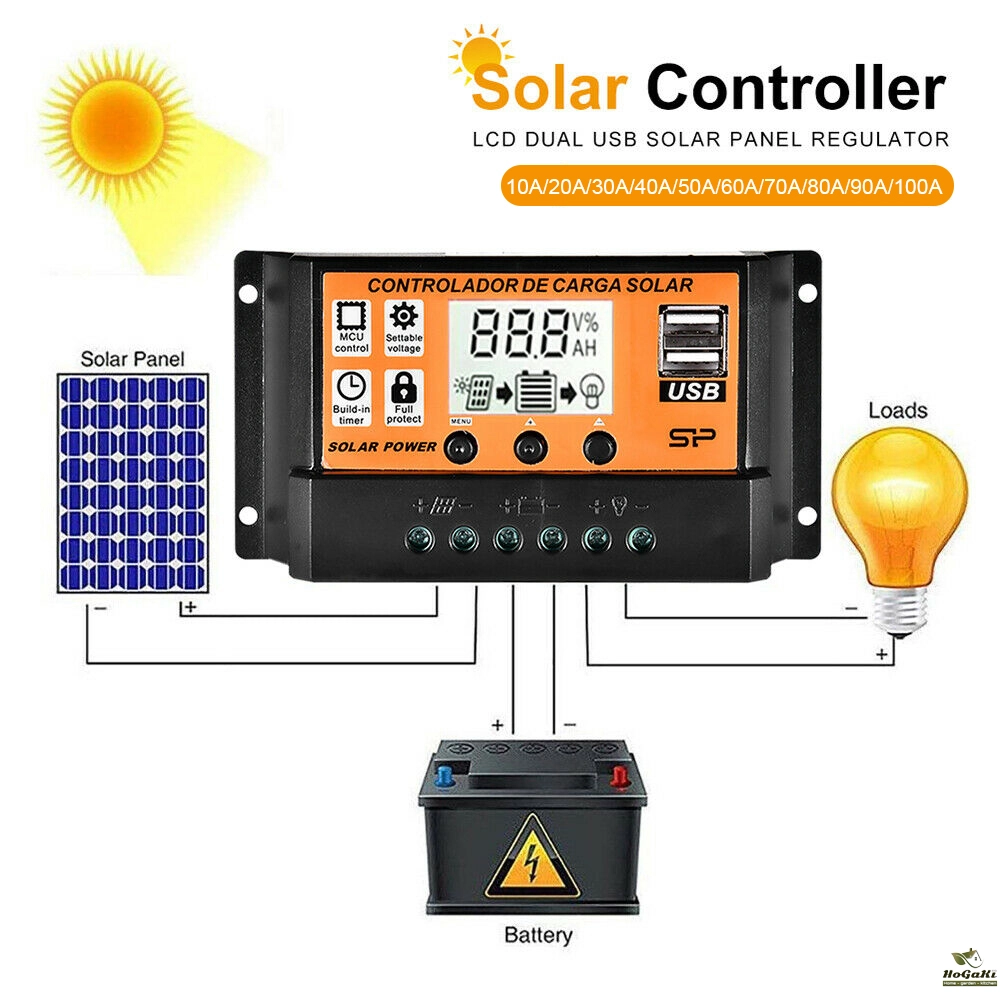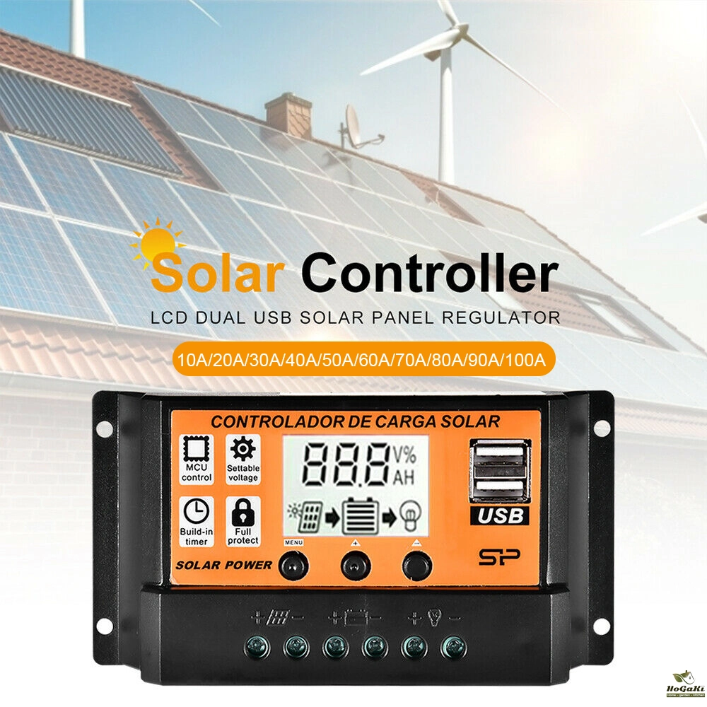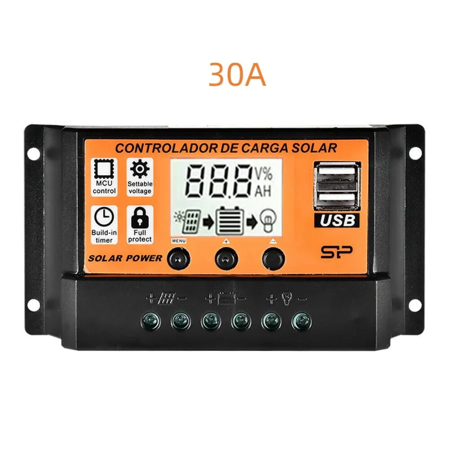 10A 20A 30A 12V 24V Auto Solar cells Panel Battery Charge Controller PWM Solar PV Regulators LCD Display 5V USB