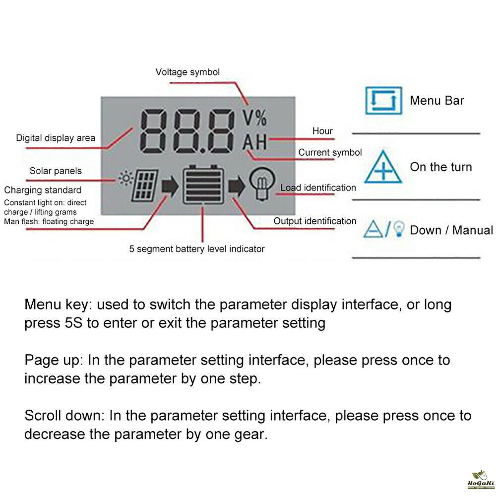 - Large screen LCD display, charge and discharge current display, cumulative power generation and discharge power query, temperature display, light control + delay control; adjustable charge and discharge parameters, with power-off memory and other functions.