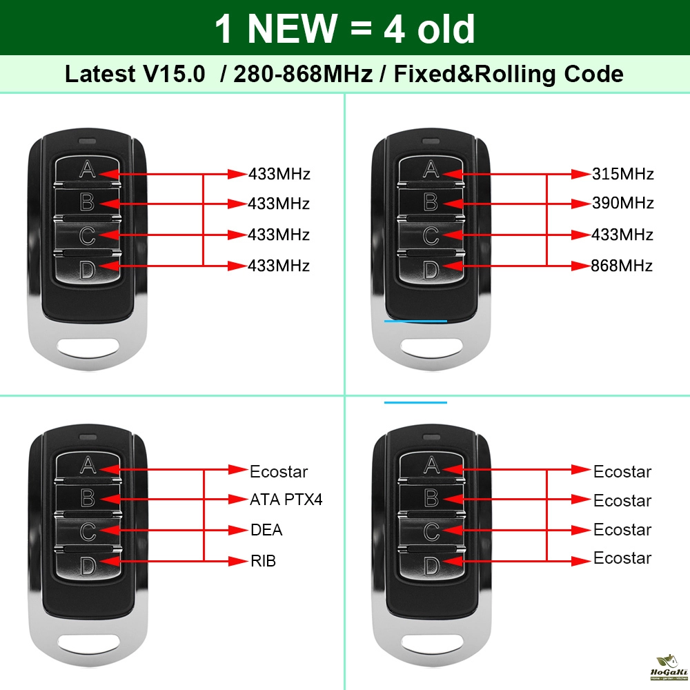Multi-Frequency 280-868MHz Universal Garage Door Remote Control Duplicator Clone 433.92MHz 433.42MHz Gate Keyfob Transmitter