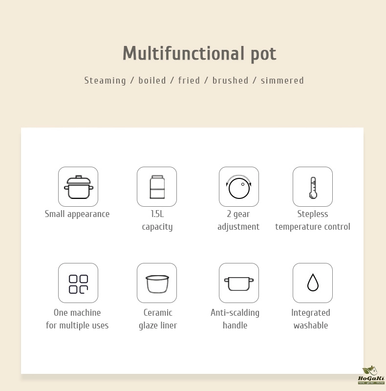 Electric heating/hot pot function: steaming, frying, frying, frying, boiling, stewing, braising, hot pot
