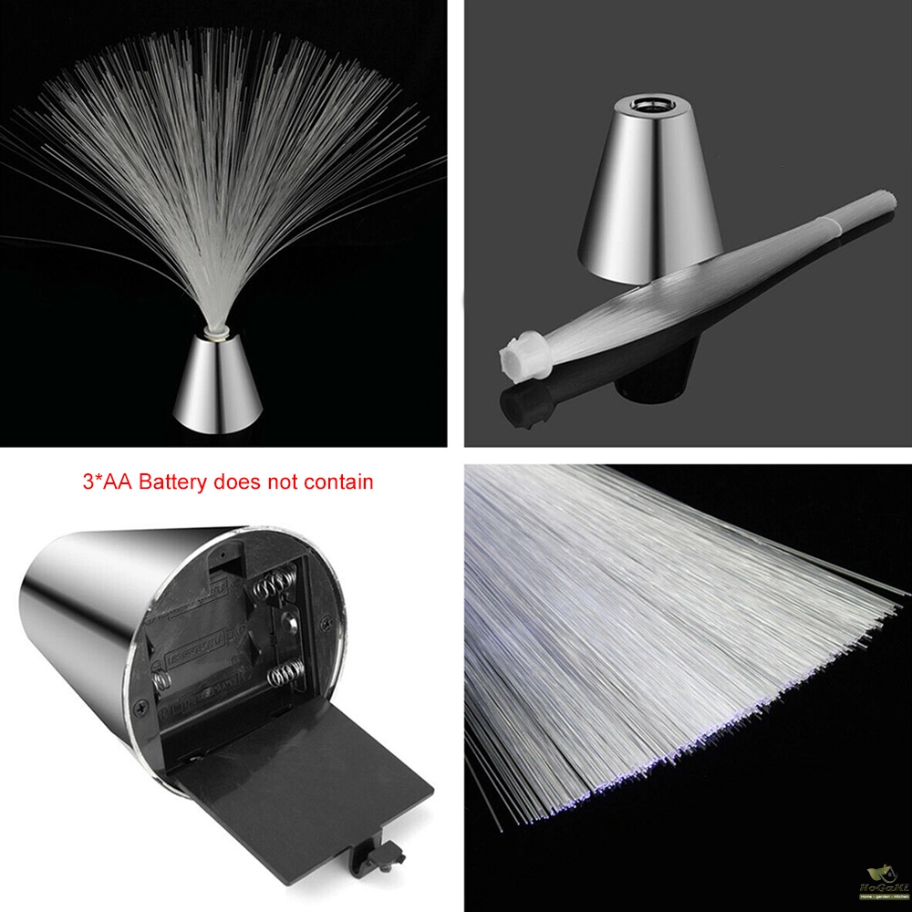 1: LED fiber optic light using 3 AA batteries, three red, green, blue three different color combinations emit colorful light.