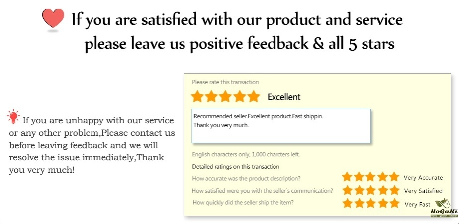 2.If you are satisfied with our service and products, please leave us 5 star positive feedback. It is the most important for us. Your 5 stars Review will be appreciated and Encouraged.