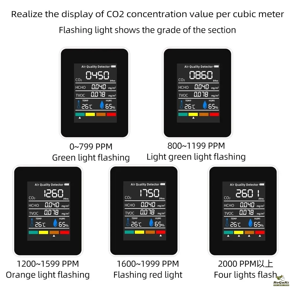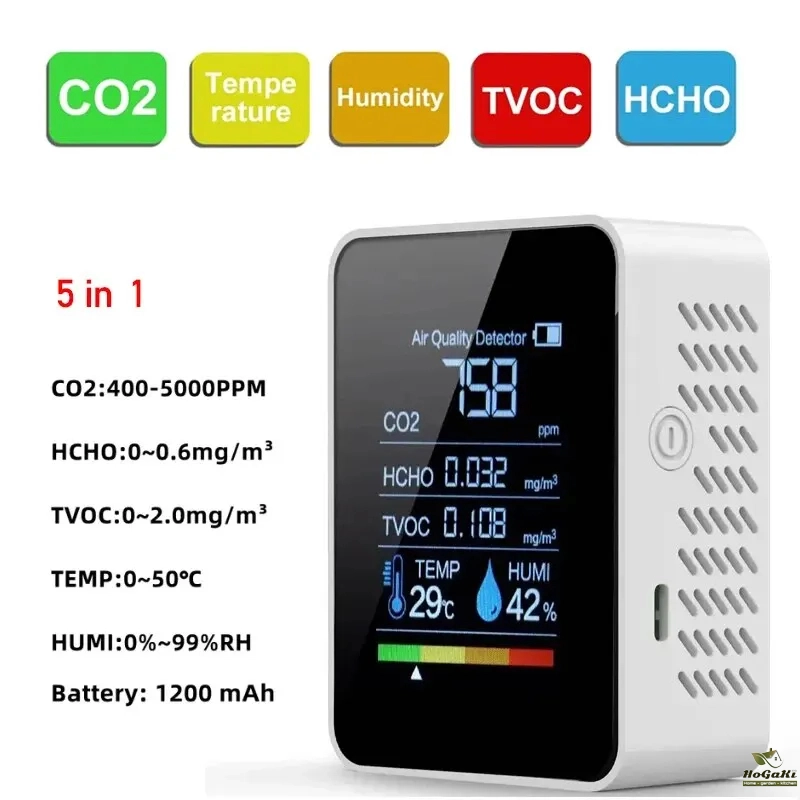 MULTIPLE USES: 5 in 1 meter can detect carbon dioxide concentration in air, and HCHO, TVOC, Temp, Humi
