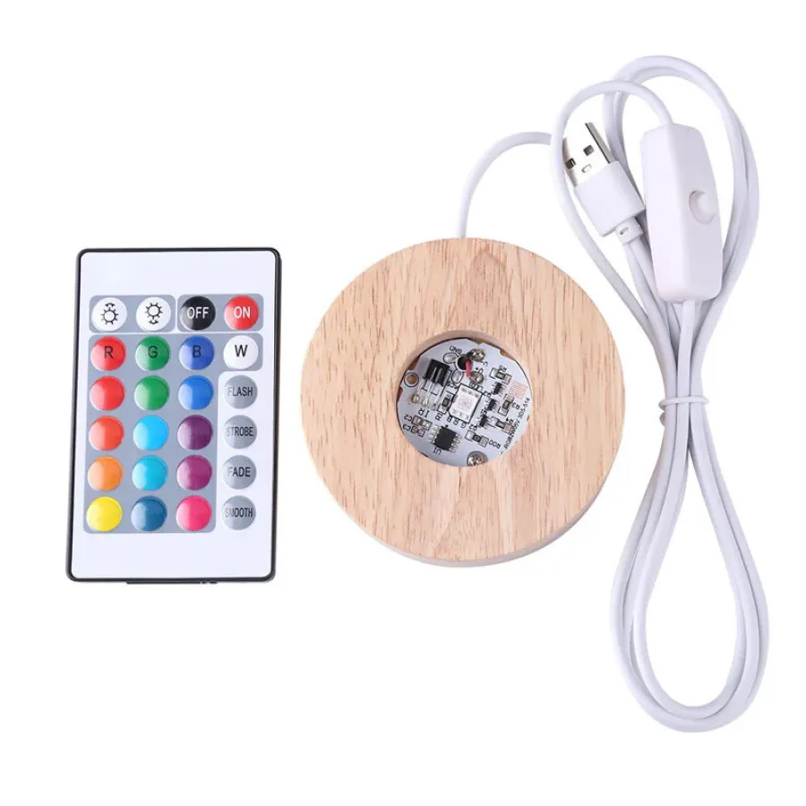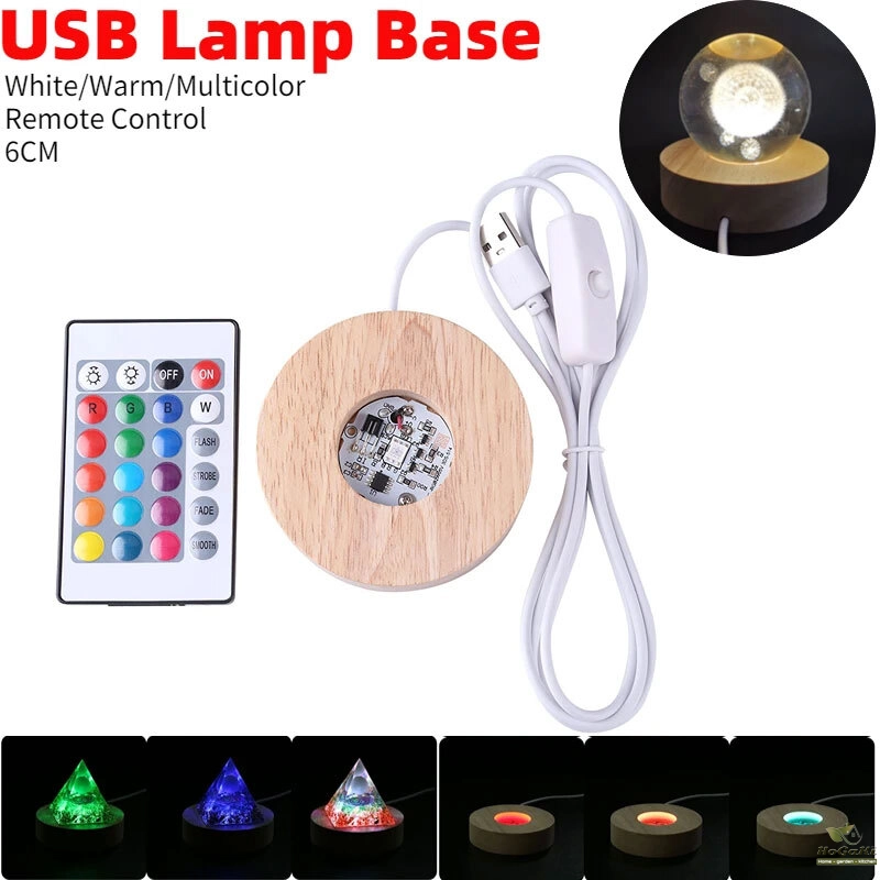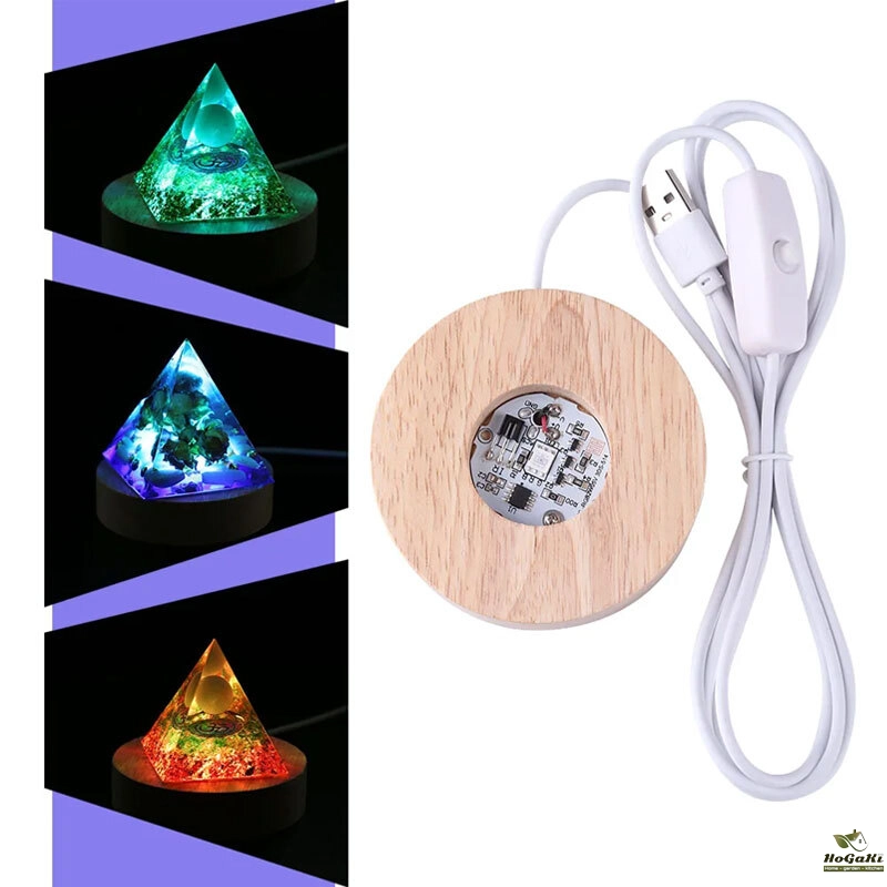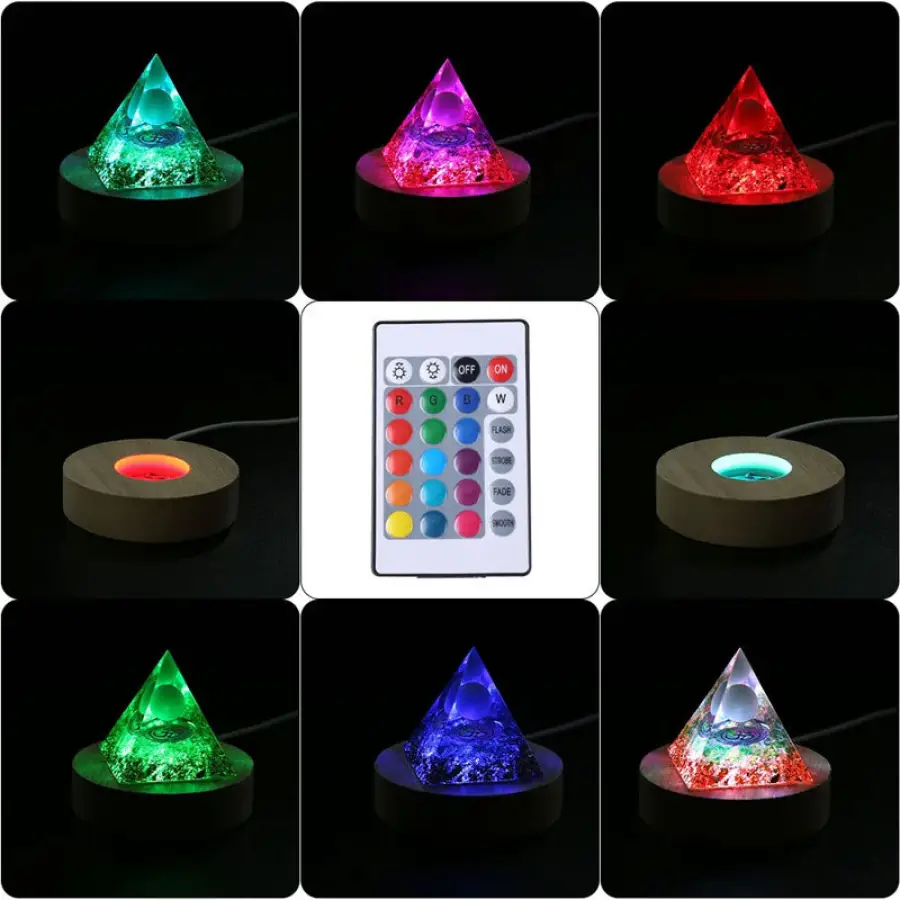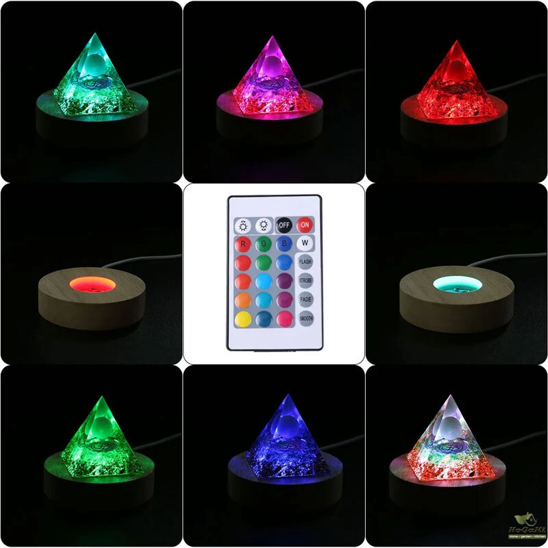 Natural Stone Orgonite Pyramid Crystal Wood Light Base Remote Control Wooden LED Night Light Stand Lamp Holder Lamp Home Decor