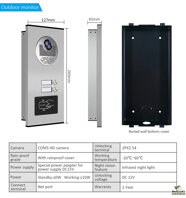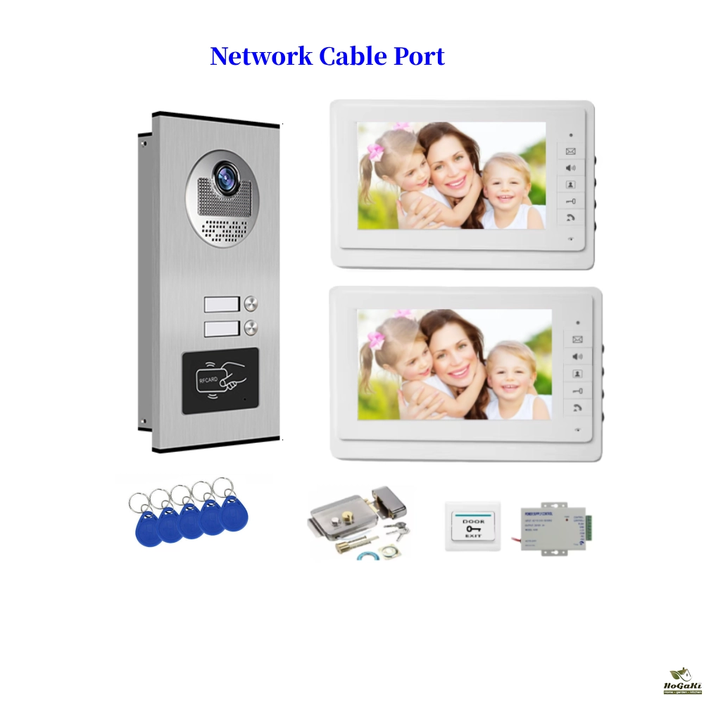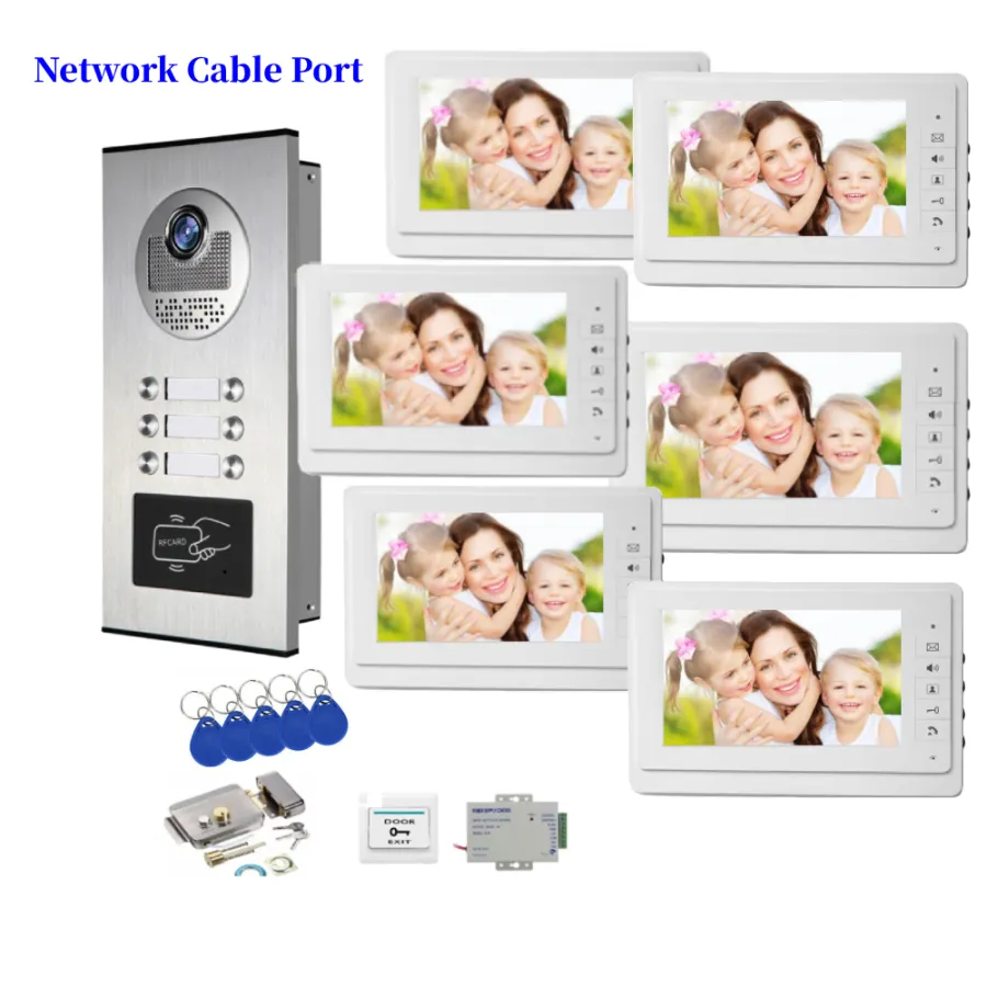 V70F-660-1V6=1pcs 2 Buttons Camera+6pcs Monitors+Adapter+5pcs RFID Keyfobs+1pcs Test Network Cable+Manual