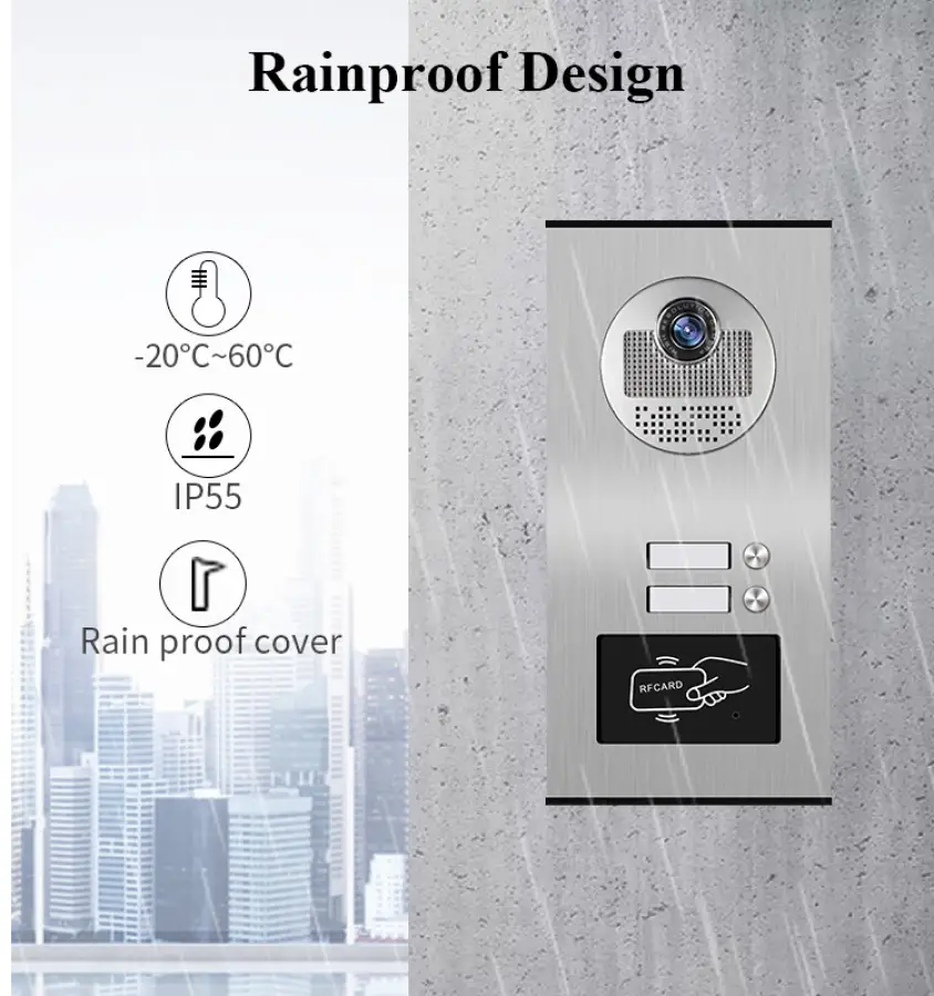V70F-660-1V3=1pcs 2 Buttons Camera+3pcs Monitors+Adapter+5pcs RFID Keyfobs+1pcs Test Network Cable+Manual