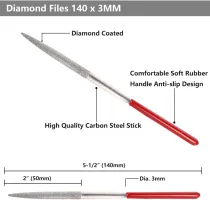 MINI SIZE -  10 x Small Files, Total Length: 5-1/2" (140mm) , File Length: 2" (50mm), Diamond Grit: 150, Handle Shank Diameter: 1/8" (3mm).