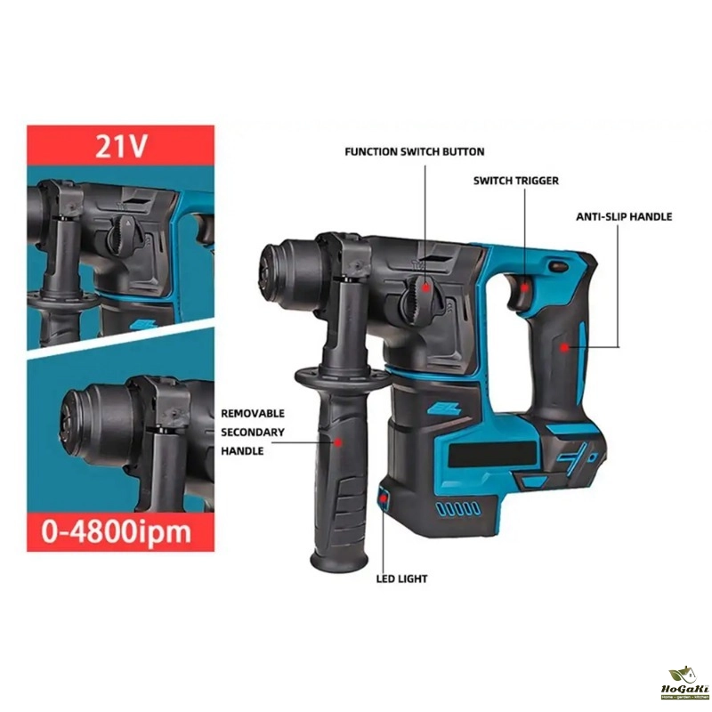 36mm 2-Mode Brushless Electric Impact Hammer Drill Handheld Electric Rotary Hammer Repaire Power Tools For Makita 18V Battery