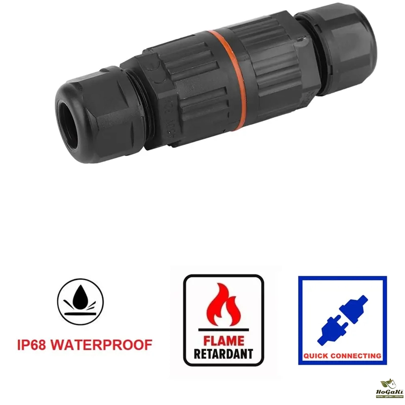 3. Electric Safety: 2 way wires electric junction box/electrical connector 2 pins for cable size: Ø 0.16-0.39 inch (4-10 mm). Support Low DC & High A/C Power waterproof connector, our waterproof connector can be used for 2-core and 3-core connections.