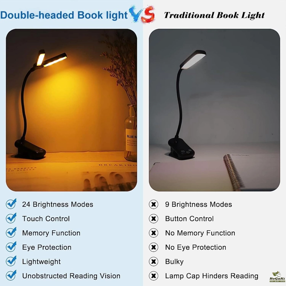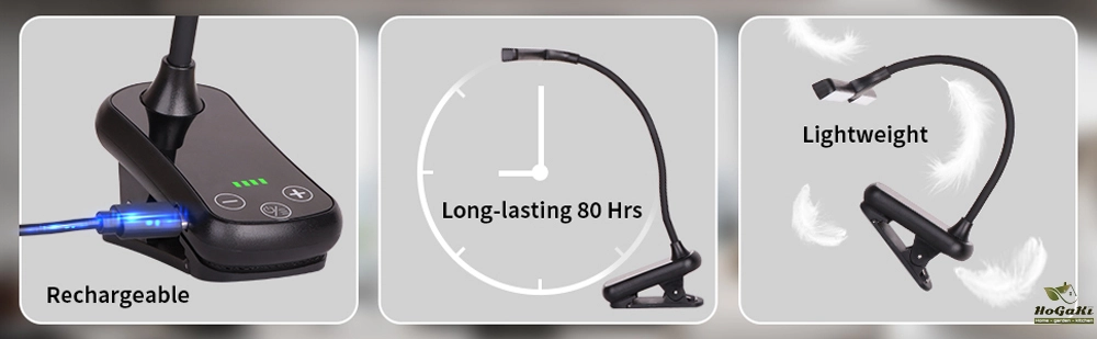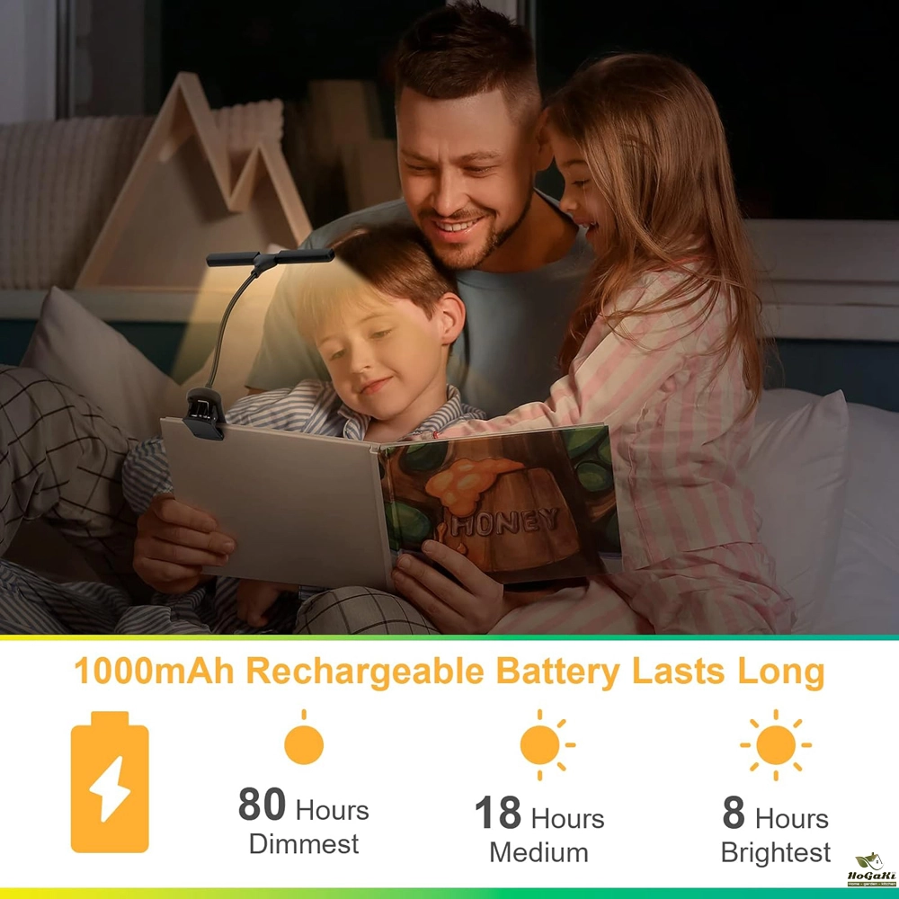【Powerful Battery & Service Life】- Rechargeable book light with rechargeable battery. Fully charged can enjoy about 40 hours of wireless reading. (In low brightness) Horizontal book light can be widely used for reading, embroidery, drawing and piano practice. Durable LED lasts over 50,000 hours without replacement.